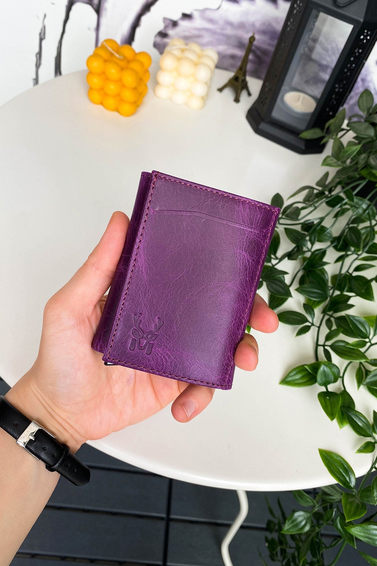 Pescol - Genuine Leather Purple Smart Card Holder / Wallet With Rfid Protection Mechanism, Top Level Craftsmanship