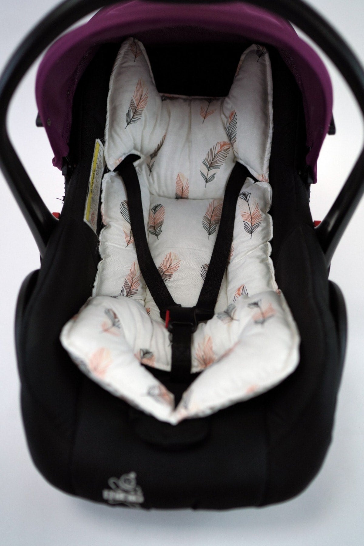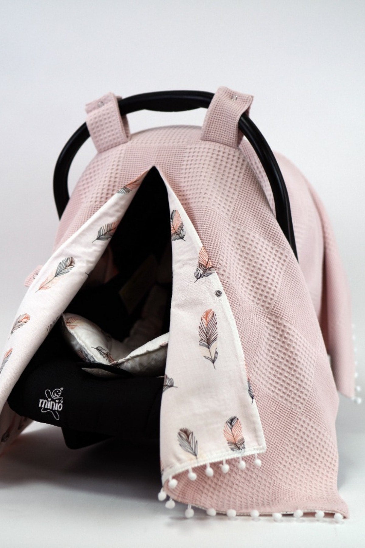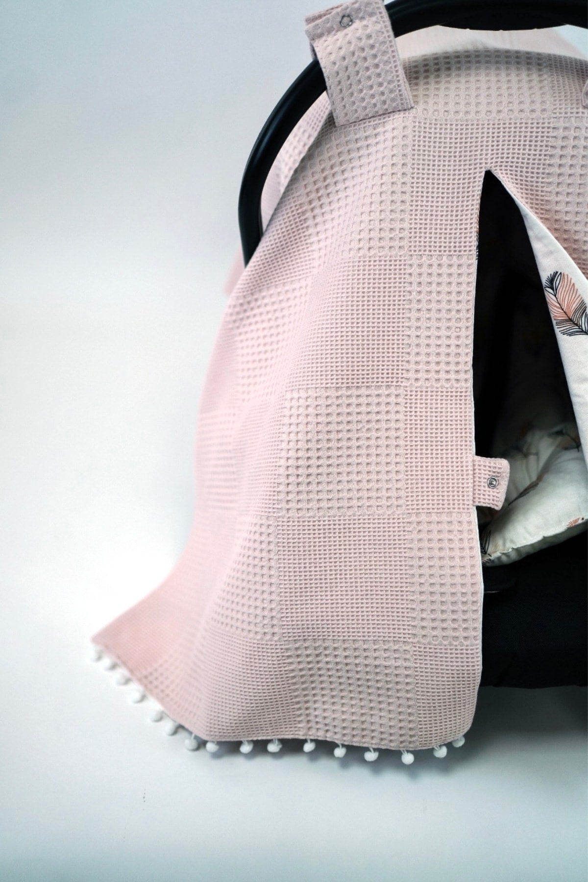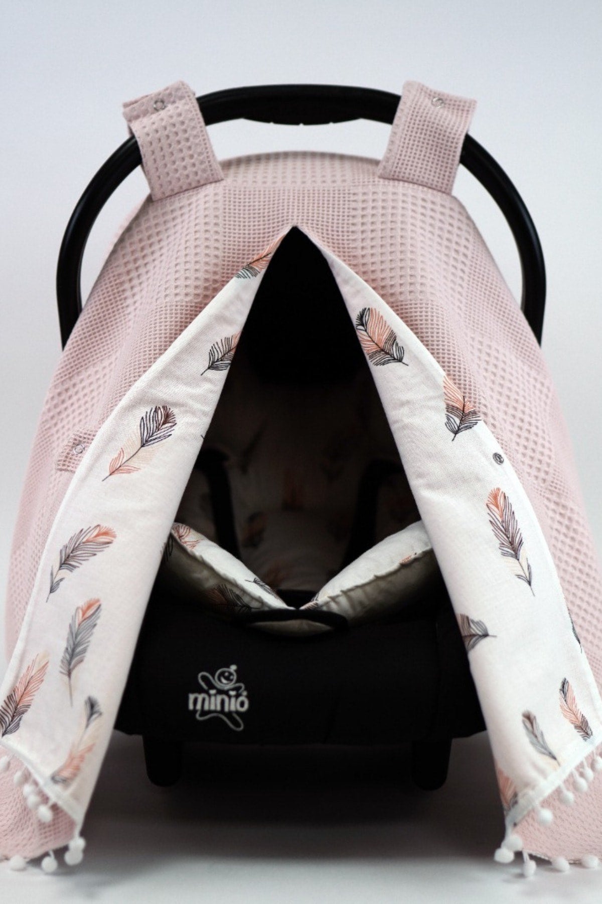 Pink/Orange Feather Poplin Pompom Stroller Cover And Cushion