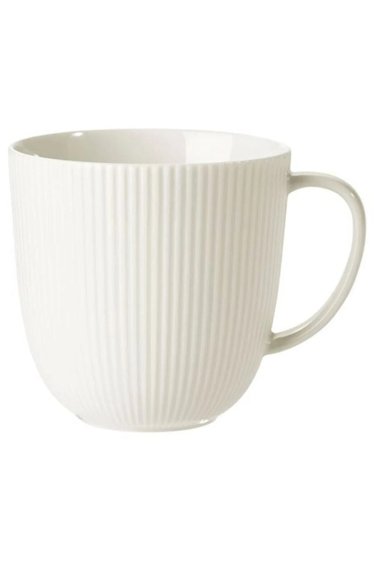 Porcelain Striped Mug Cup - Ofantlıgt 9 Cm White Mug Cup Feldspar Porcelain