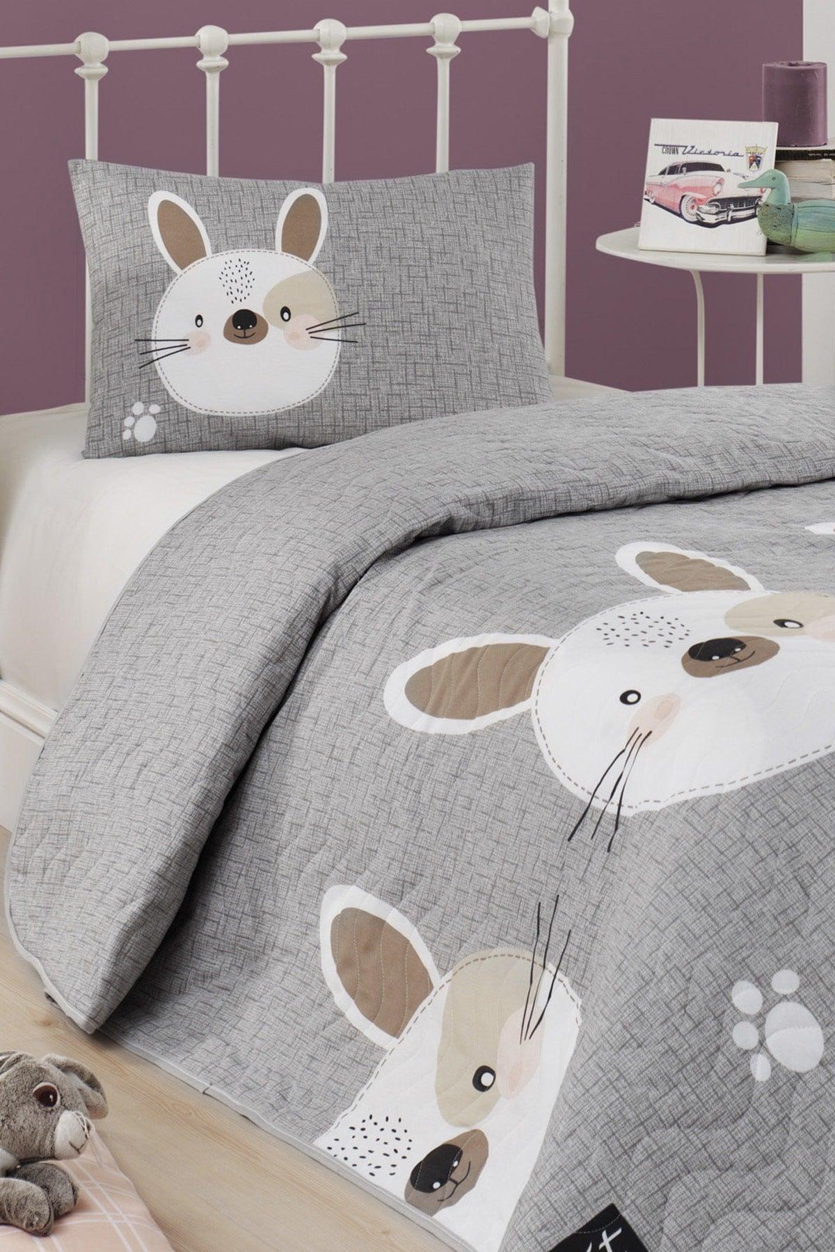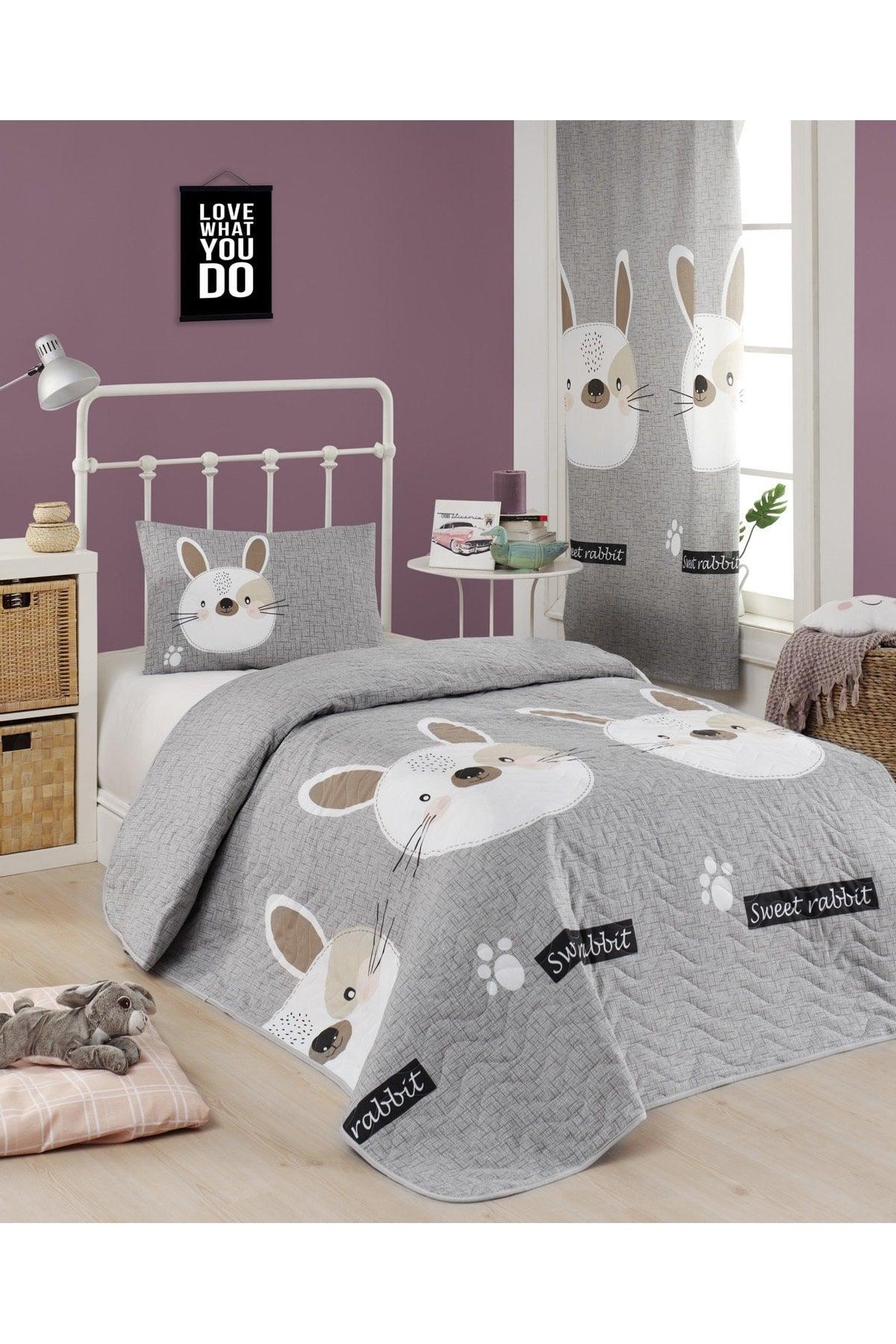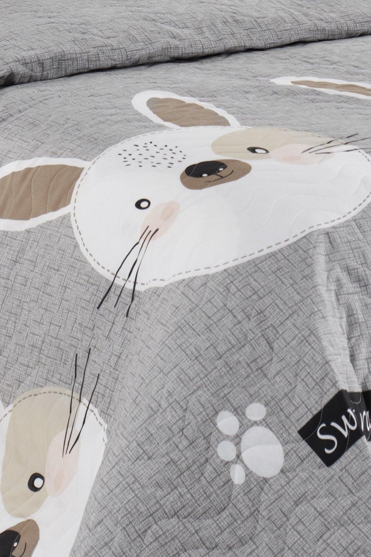 Quilted Bedspread Set Single Rabbit A.Brown-Grey-Pink