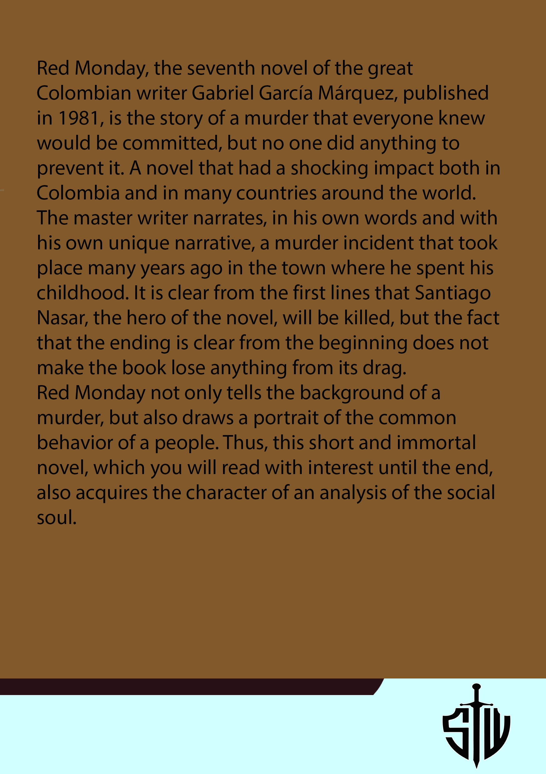 Red monday, the seventh novel by the great colombian writer gabriel garcía márquez, published in 1981, tells the story of a murder that everyone knew would happen, but that no one did anything to stop it. the master writer narrates a murder incident that took place years ago in the town where he spent his childhood, in his own words, with his own unique narration. it is clear from the very first lines that the hero of the novel, santiago nasar, will be killed, but the fact that the ending is clear from the beginning does not make the book lose its grip. red monday paints not only the background of a murder, but also a portrait of the common behavior of a people. thus, this short and immortal novel, which you will read with interest until the end, also gains the quality of a social soul analysis. more than 10 stocks are offered to be sold at the campaign price. This publication is ideal for readers seeking insightful and educational content. Prepared by experienced authors and printed with high-quality materials. Great for students, educators, and curious minds.
