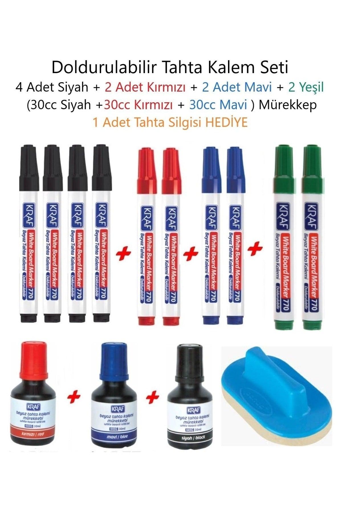 Kraf refillable whiteboard pen set package contents: 2 x red kraf 770 refillable board pen2 x blue kraf 770 refillable board pen4 x black kraf 770 refillable board pen2 x green kraf 770 refillable board pen1 x blackboard ink 30cc1 x blueccboard ink 30 wood ink 30cc1 x plastic felt board eraserproduct features you can write, draw graphics and mark on whiteboards used in school and classroom classrooms, meeting and seminar rooms. it can be easily wiped off all non-porous surfaces such as enamel, glass and melamine with a dry eraser and cloth. .it has a fast-drying and light-resistant ink feature. Improved version for clearer understanding and better search visibility. Suitable for users seeking detailed and reliable product information.