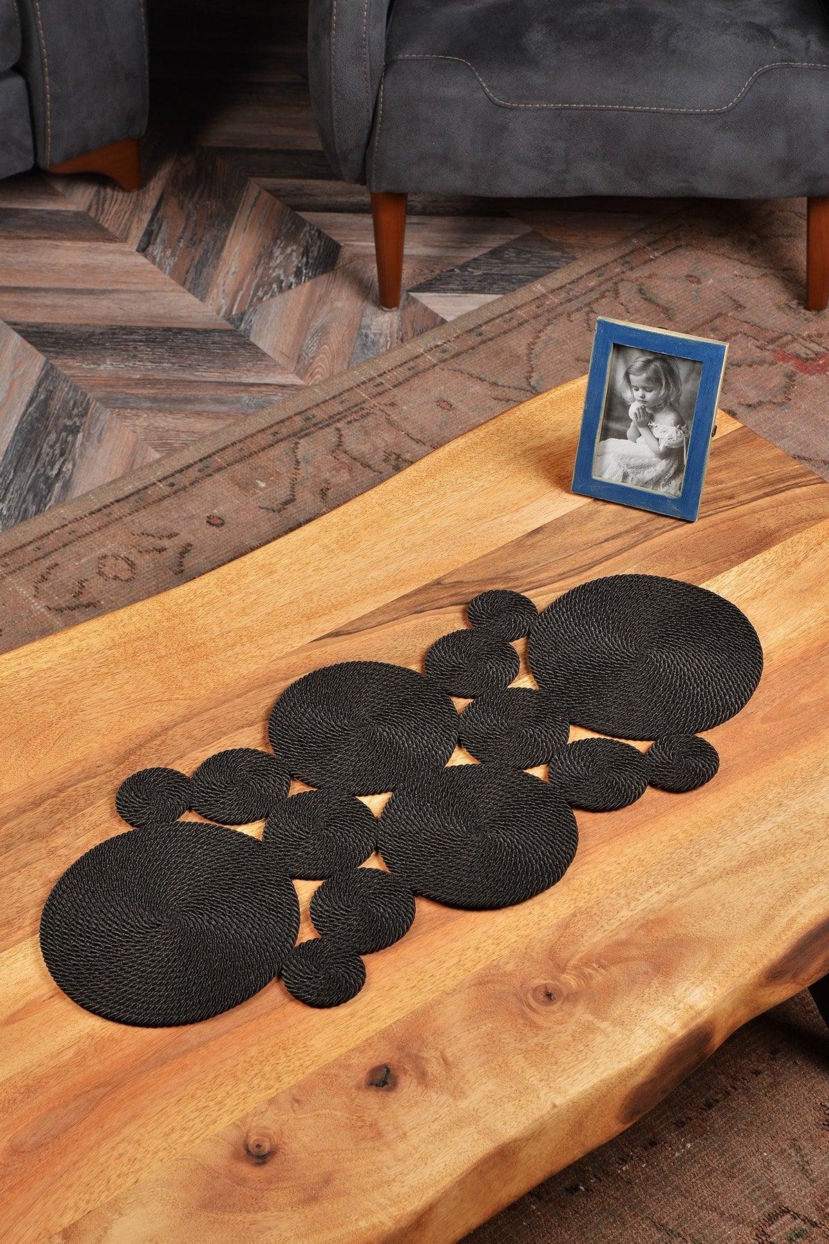 Rustic Lite Black Washable Polyp Wire Mesh Rope Salon Dining Table Kitchen Cover Runner