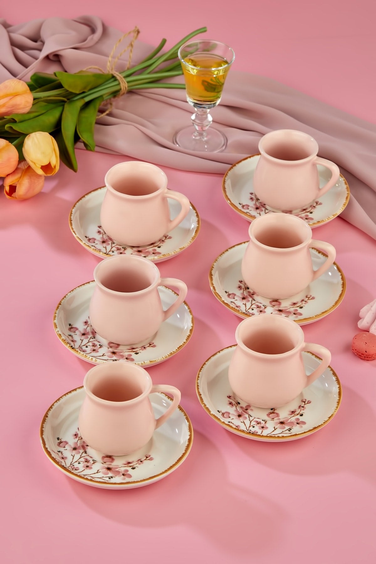 Sakura pink 12 piece lux ceramic 6 person coffee cup set sakura pink 12 piece lux ceramic 6 person coffee cup set is a product that will enhance your coffee pleasure even more. this mug set is made of white ceramic decorated with pink sakura flowers. the cups have a stylish appearance with gold handles and rims. plates are round and thin to match the cups. this set consists of 6 cups and 6 plates. the cups have a capacity of 80 ml. this mug set is a great gift option for both yourself and your loved ones. your coffee conversations will be even more enjoyable with the sakura pink 12 piece lux ceramic 6 person coffee cup set. package contents6 pieces of coasters (12 cm)6 pieces of turkish coffee cups (80 cc)product features1. made of class ceramic material, underglaze painting technique has been used.machine-washable patterns do not deform any high-temperature resistant to microwave use. our products are carefully packaged and sent in a high-strength parcel. Improved version for clearer understanding and better search visibility. Suitable for users seeking detailed and reliable product information.
