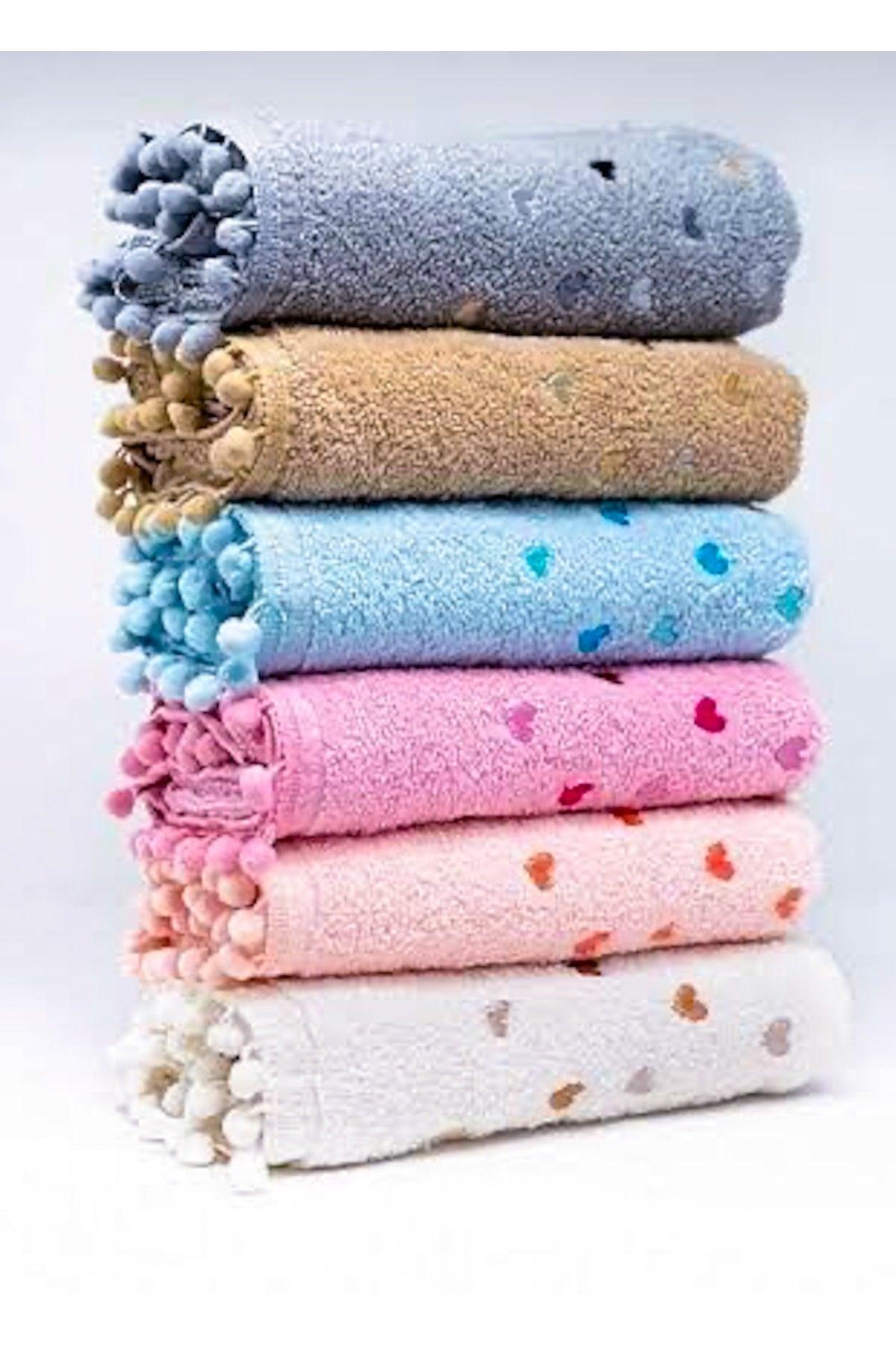 Set Of 6 30X50 Kitchen Towels With Pompom And Heart Embroidery