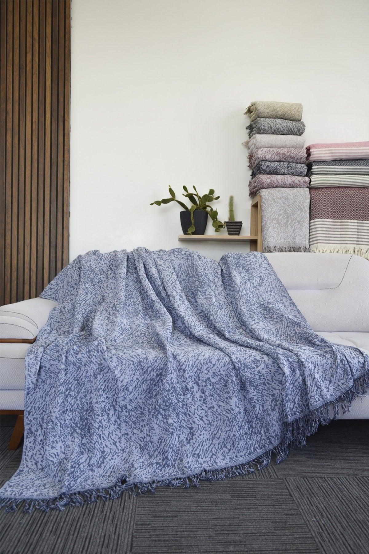 Silva Natural Cotton Linen 170X220 Cm Blue Sofa Cover | Throw