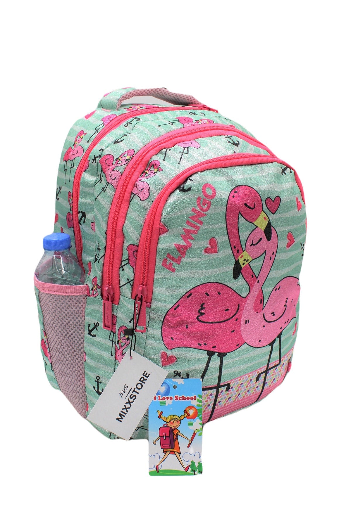 Sim Flamingo Patterned Green Color Backpack Primary School Bag Set For Girls With Food And Pencil Holder