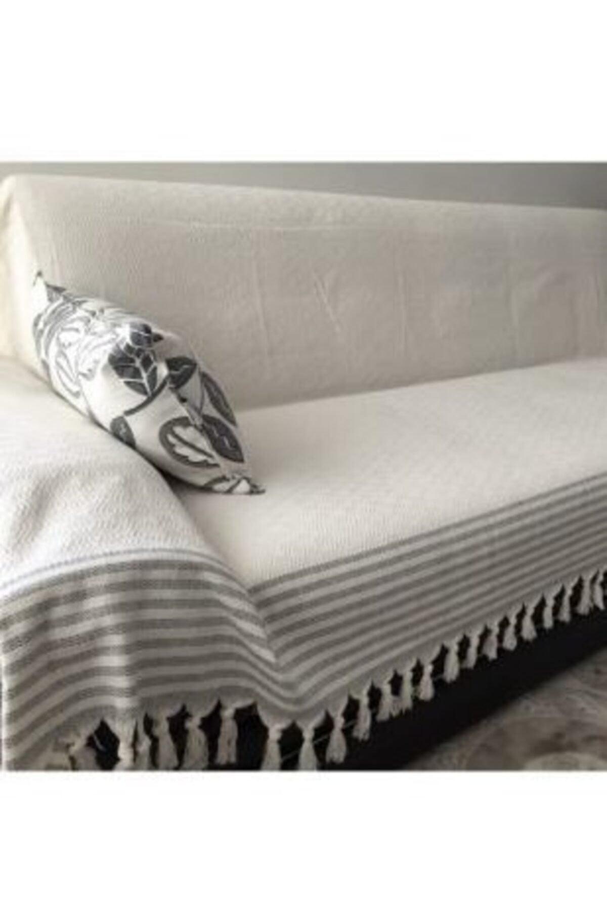 Sofa Cover Set Cream Ground Gray Striped 3X3X1X1 .