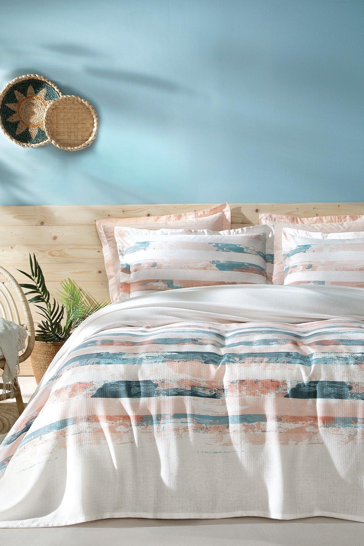 The stain pique set, which can adapt to many different decoration styles with its plain patterns, adds a peaceful and aesthetic atmosphere to bedrooms with the romantic touch of powder color. product features: vivid colors that do not fade,long-lasting, durable fabric suitable for daily usefunctional structureproduct content and size informationpike: 160x230 cm (1 piece)elastic bed sheet: 100x200x35 cm (1 piece)pillow cover: 50x70 cm (1 piece)washing instructionsit is recommended to wash at 30 degrees. Improved version for clearer understanding and better search visibility. Suitable for users seeking detailed and reliable product information.
