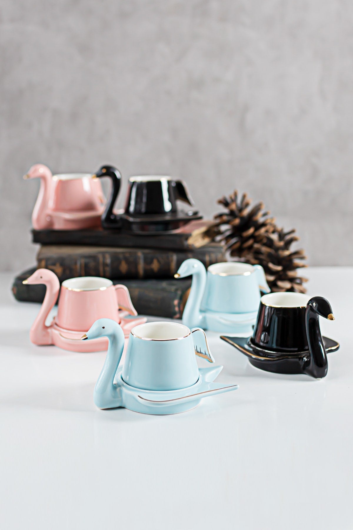 Swan 12 Piece Coffee Cup Set For 6 People Black Blue Pink 70 Cc