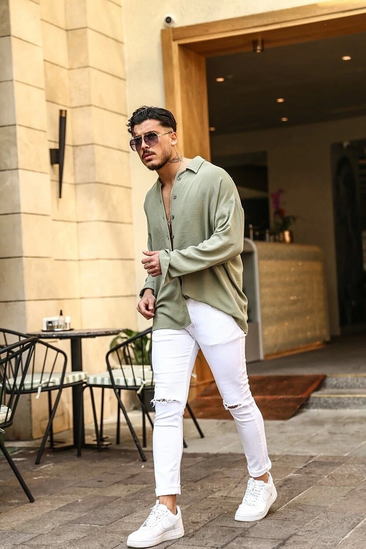 Textured Oversize Shirt Khaki