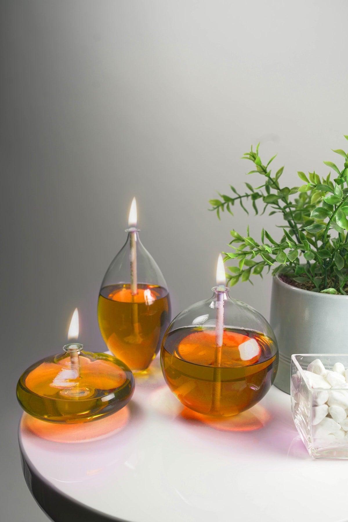 Triple Jumbo Mix Glass Oil Lamp (Sphere, Barrel, Ellipse) + 750 Ml Oil Lamp - Amber