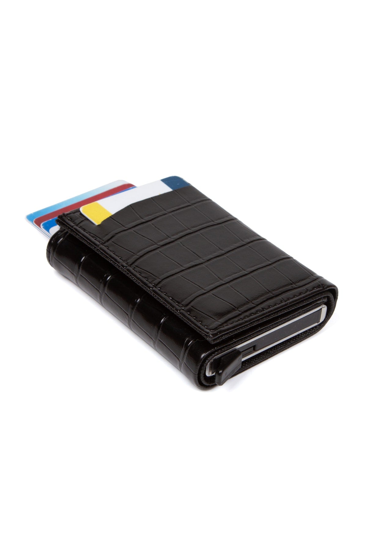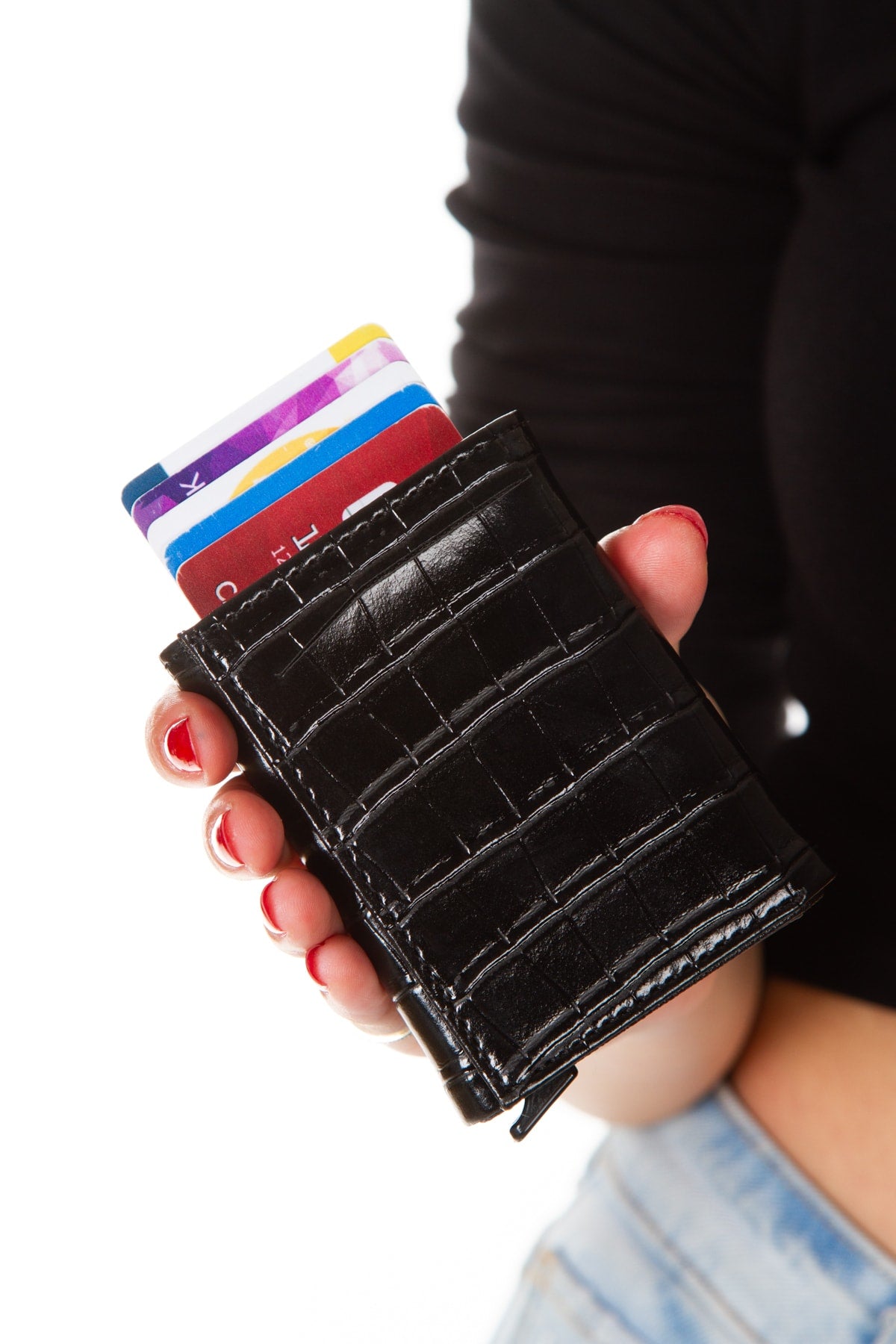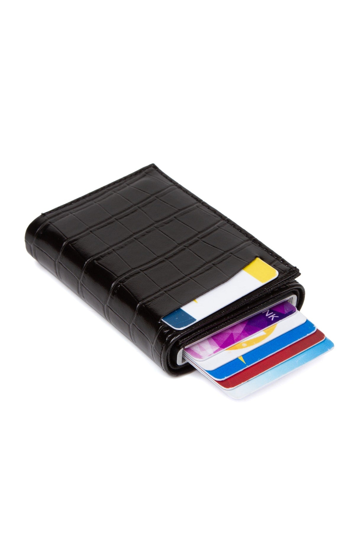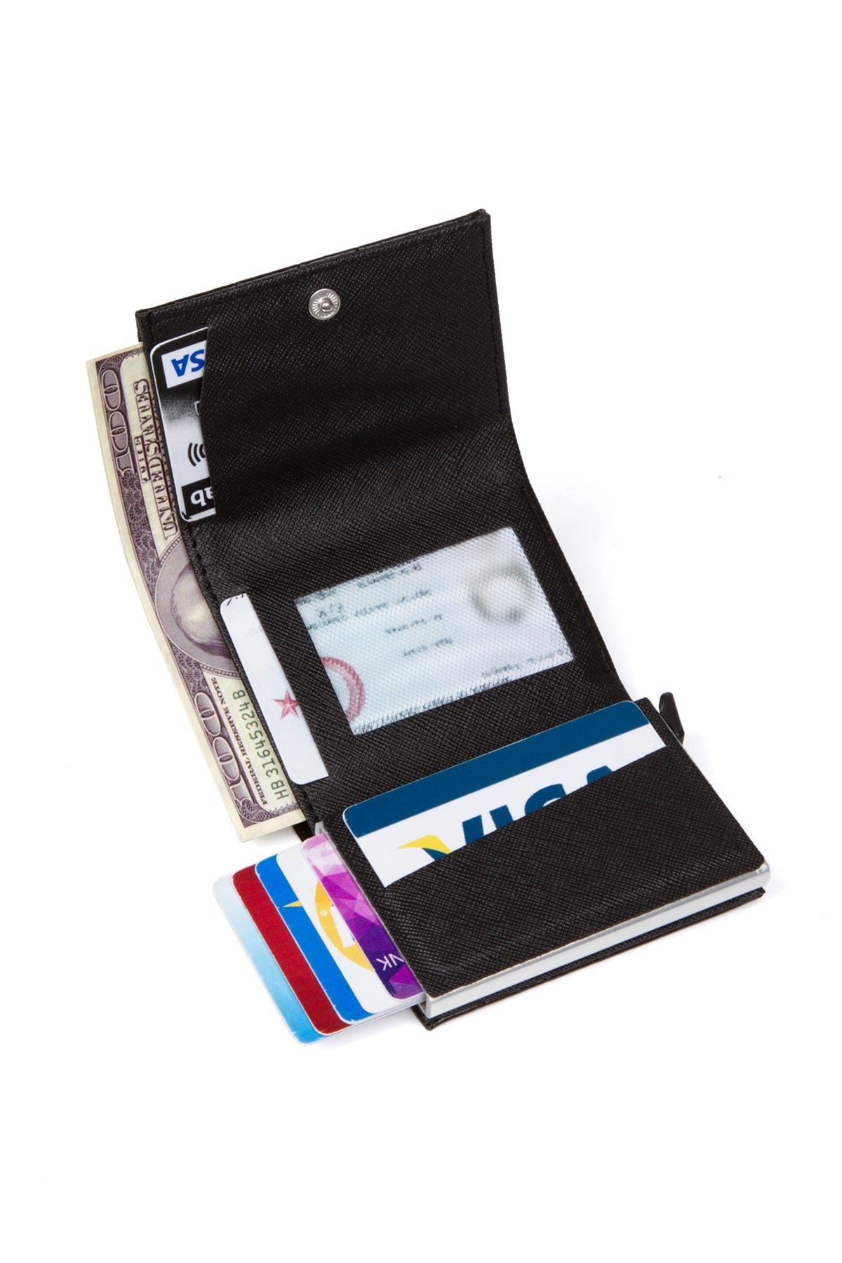Unisex Leather Aluminum Mechanism Sliding Card Holder Wallet With Paper Money Compartment