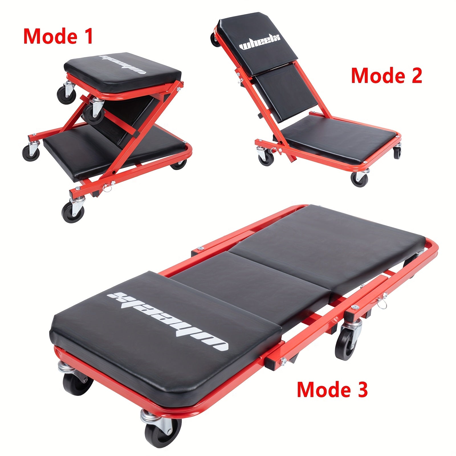 WheelX Mechanic Creeper | 36 Inches | 3-in-1/2-in-1/2-in-1 | 340lbs Capacity | Foldable | With 6pcs Wheels | Under Car Auto Repair | Red Black