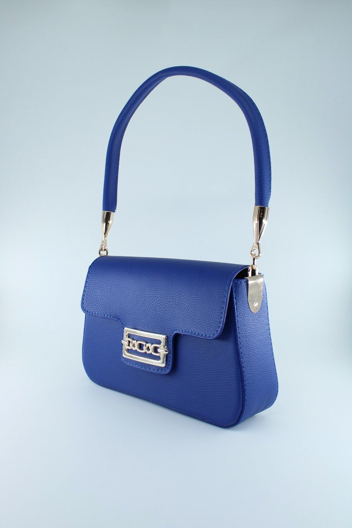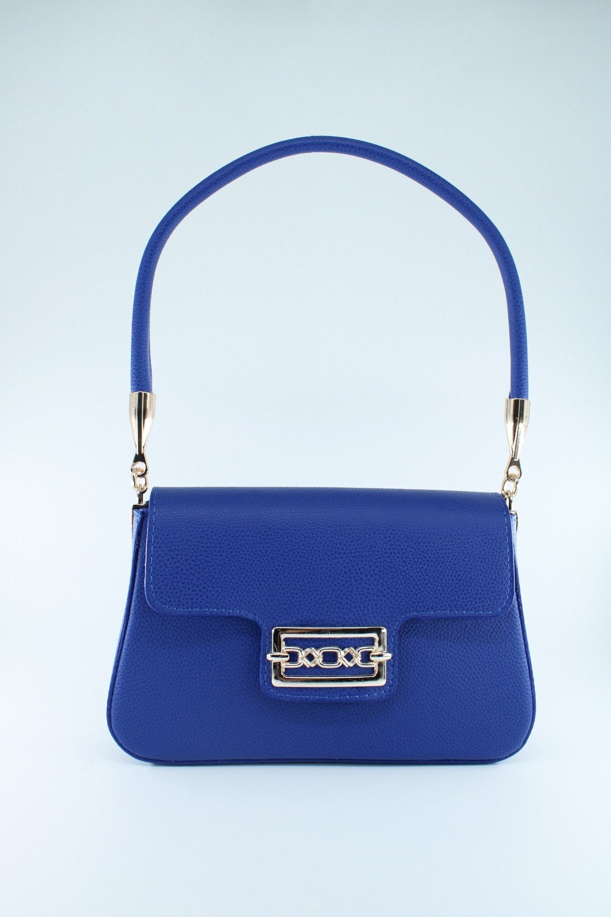 Women'S Sax Blue Textured Magnet Clamshell Lined Hand And Sleeve Bag