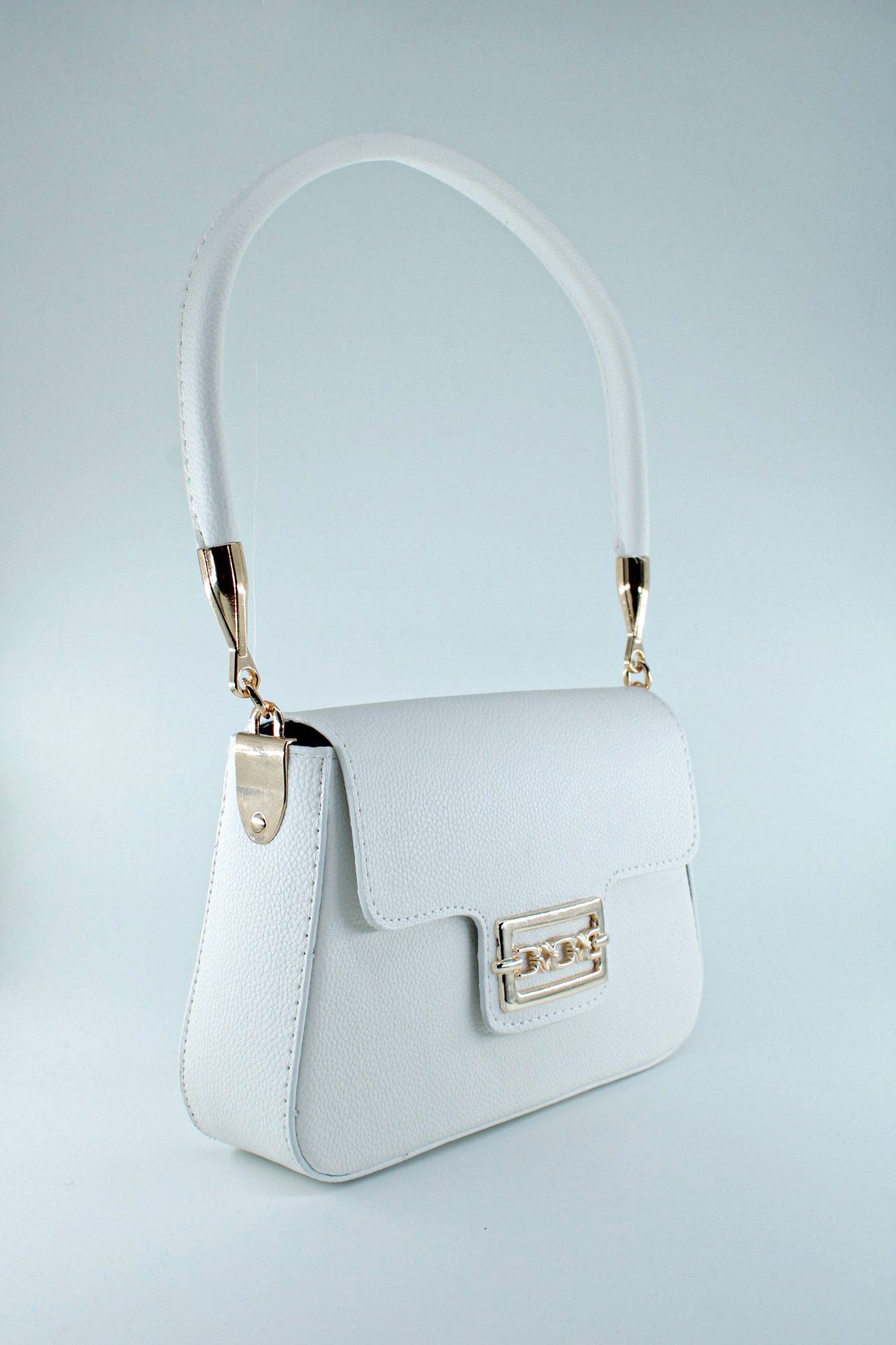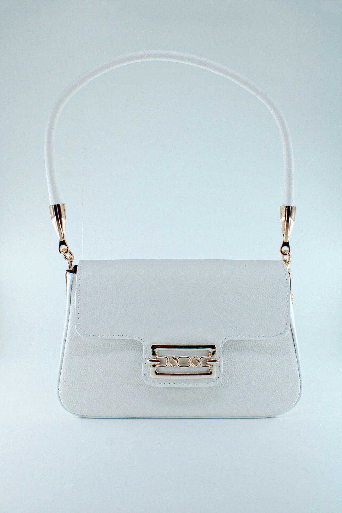 Women'S White Textured Magnet Clamshell Lined Hand And Sleeve Bag