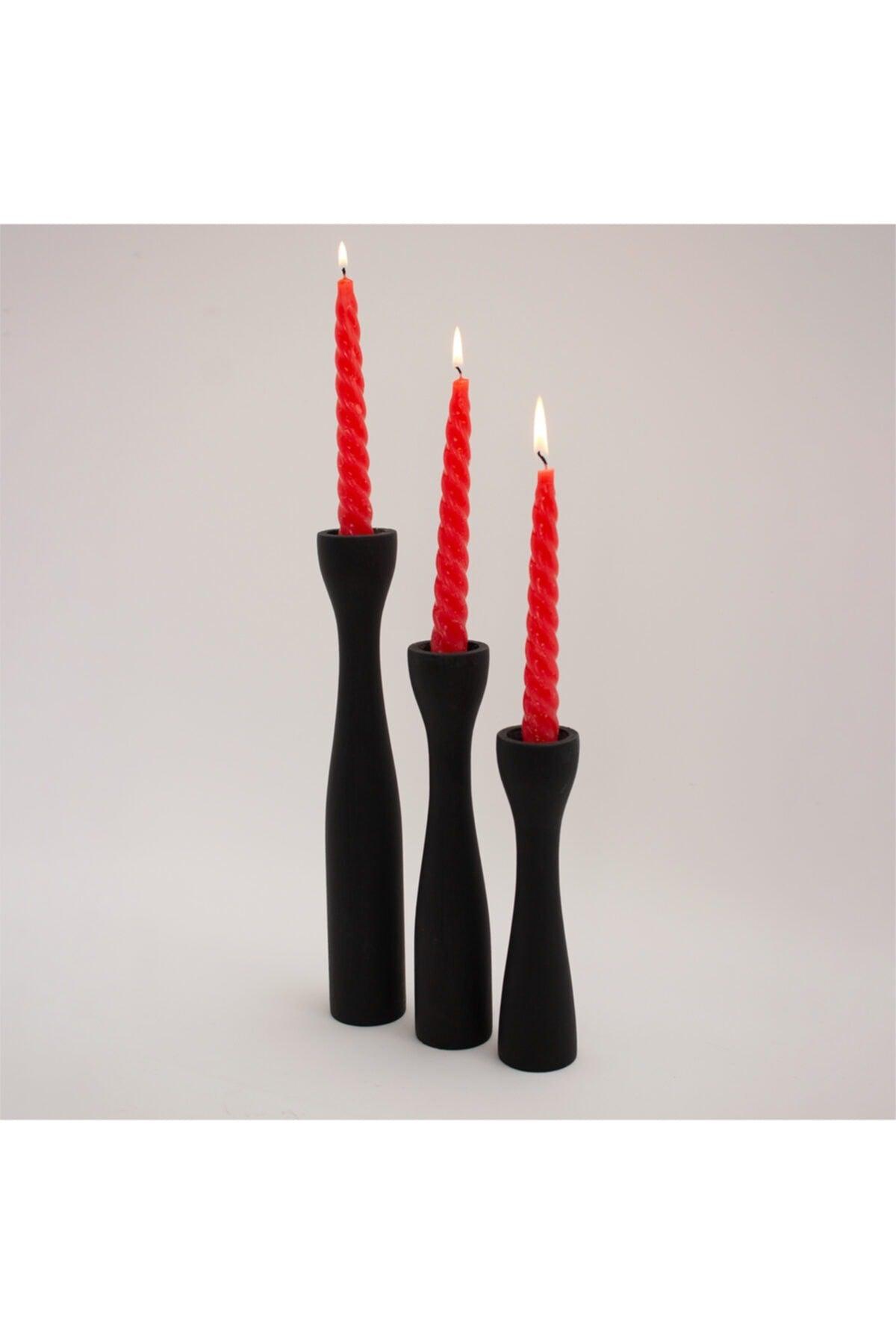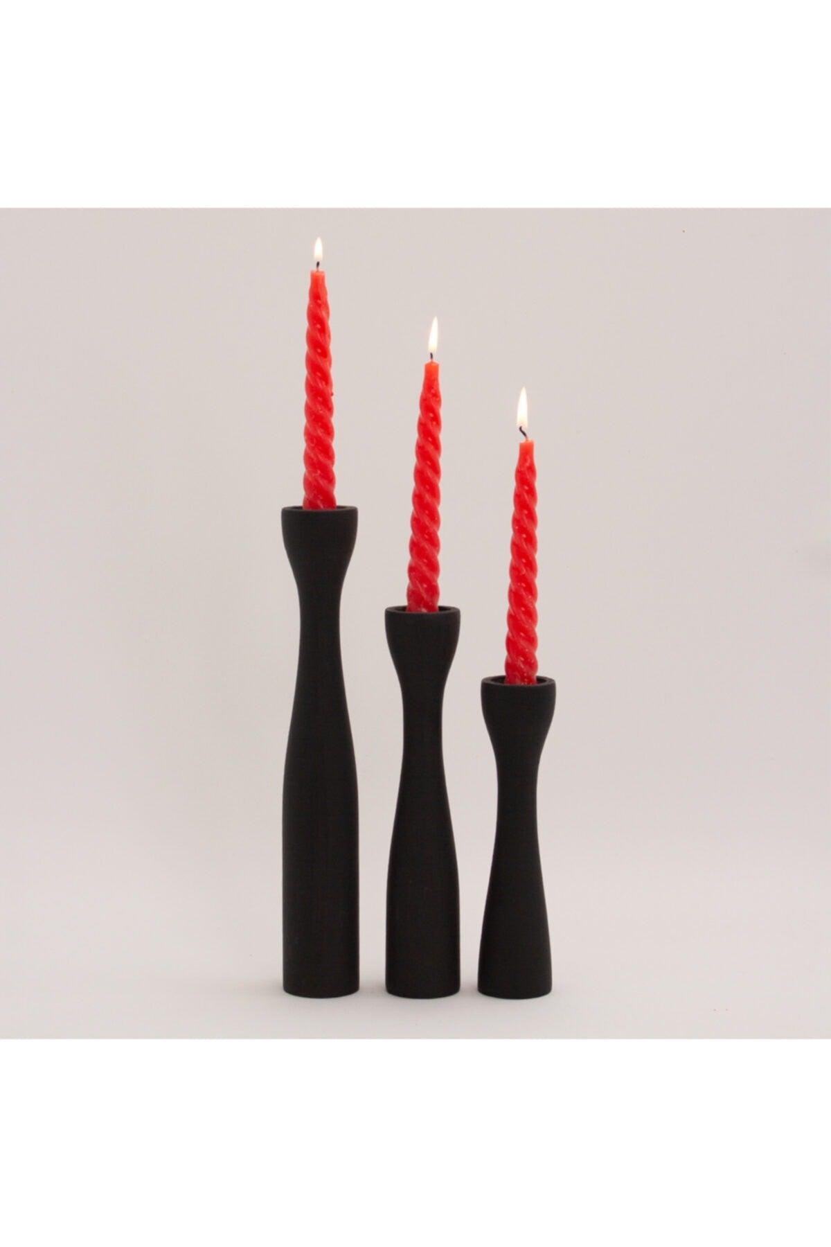 Wooden candle holder is beech (hornbeam) sizes large:30 medium :24 small:19.5 candlestick candle and telaigh candle can be put (tealigth candle hole is 3.5cm) candlestick hole is 22mm painted with matte black paint less than 5 stocks to be sold at the campaign price exists. Elegant candle with rich fragrance and stylish design. Suitable for home decor, gifts, or creating a peaceful atmosphere.