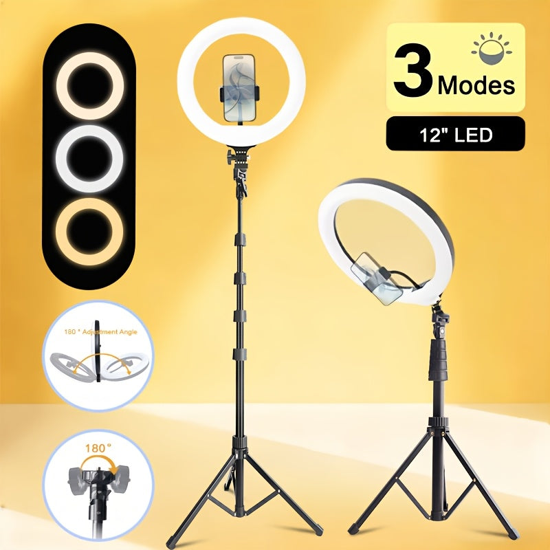 ZOMEI LED Selfie Ring Light Kit with Adjustable Tripod & Dual Phone Stand - 3 Color Modes, 12 Brightness Levels, USB Powered - Ideal for Makeup, Photography & Video, Selfie Stick for Phone, Content.... This product is made from high-quality materials and designed for long-term use. It provides comfort, efficiency, and durability in everyday life, whether at home, work, or outdoors. Its functional and modern design ensures maximum satisfaction. Order now and feel the difference!