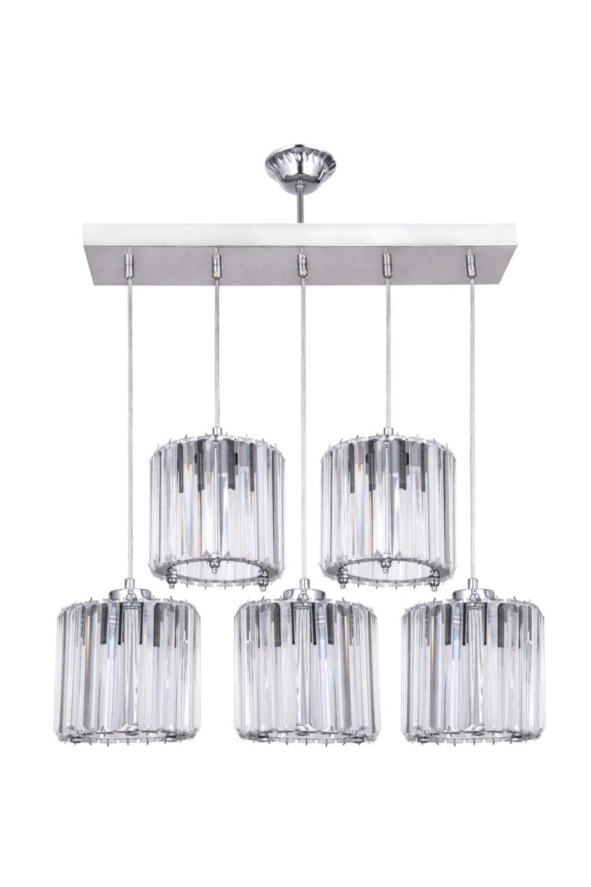 Sardunya 5 Piece Silver Y-10 Crystal Stone Chandelier