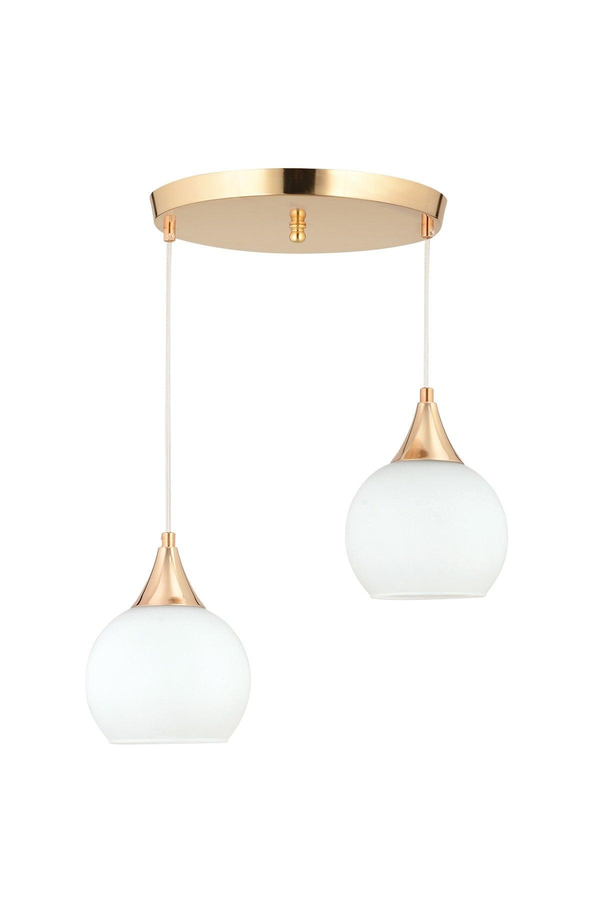 Sante 2 Pcs Gold White Glass Modern Pendant Chandelier - Swordslife