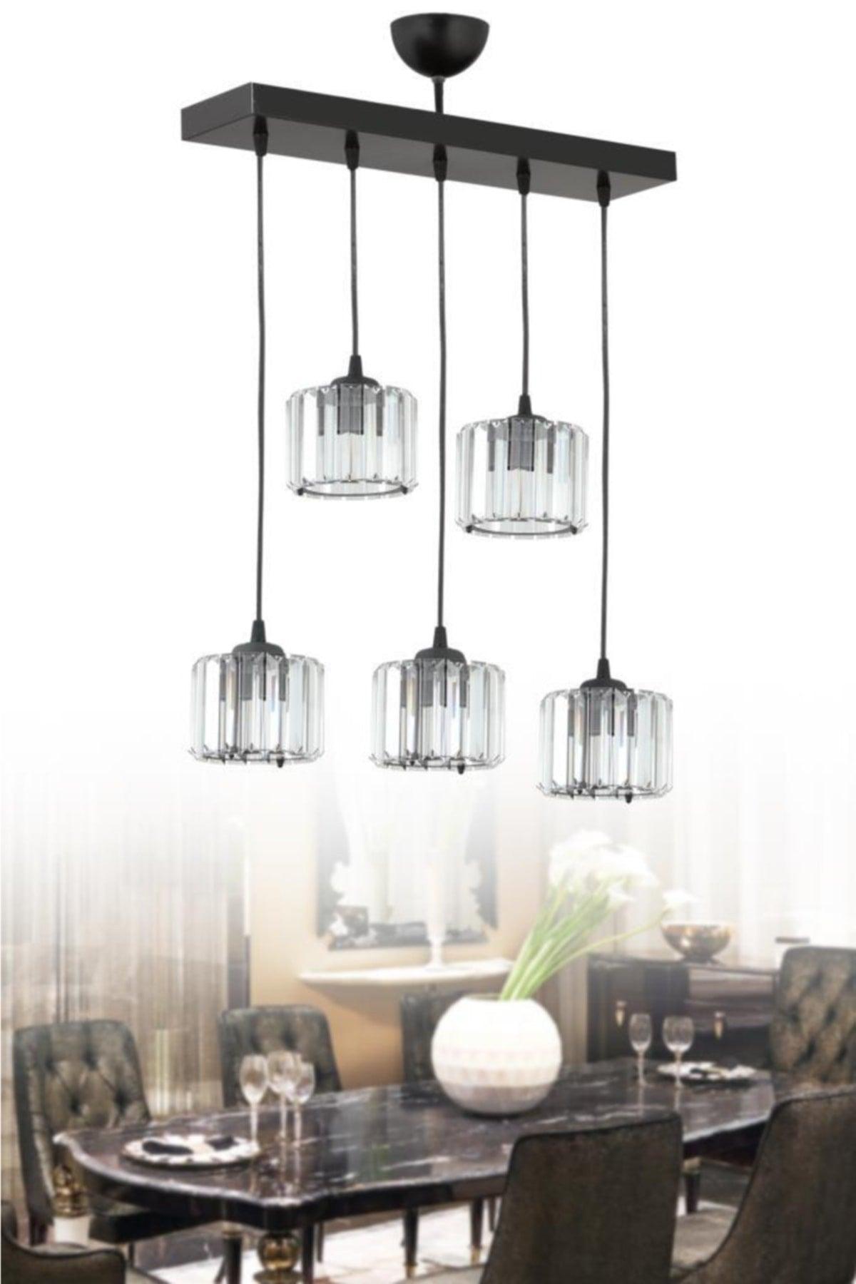 Sardunya 5 Piece Black Y-10 Stone Living Room-dining Table Chandelier - Swordslife