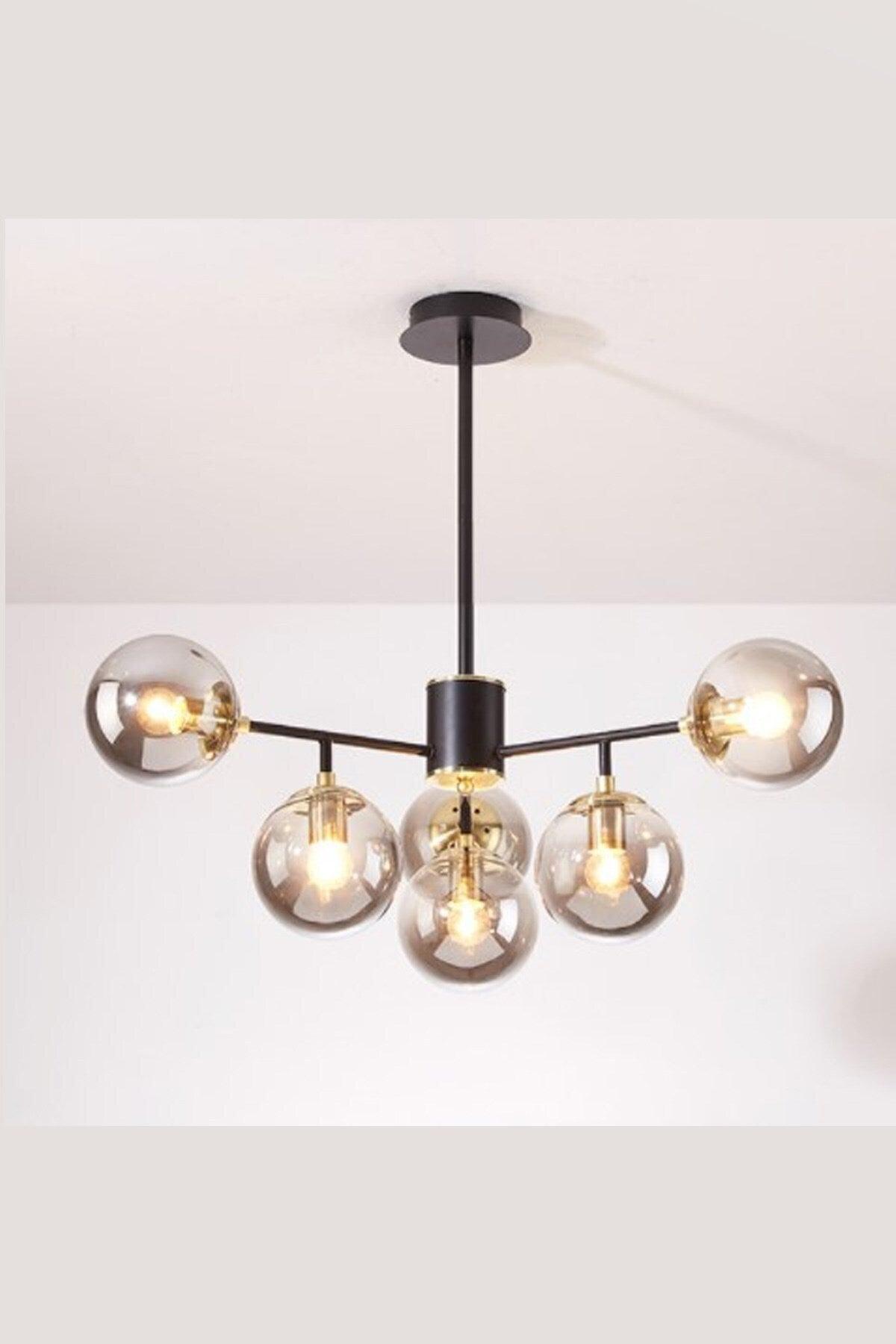 Nida 6 Black Tumbled Plafonyer Smoked Glass Chandelier