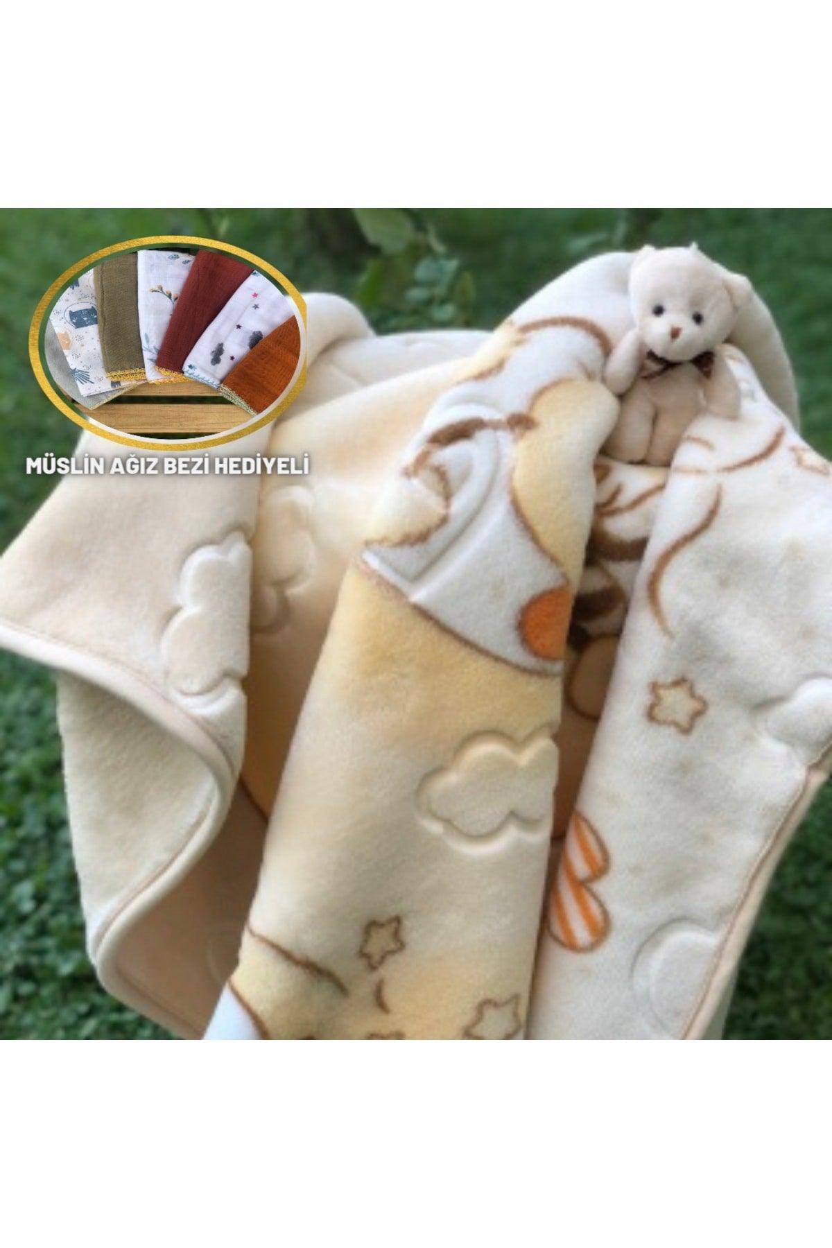 Fashion Mink Tiny Plush Teddy Bear And Muslin Mouth Cloth Gift Baby Blanket
