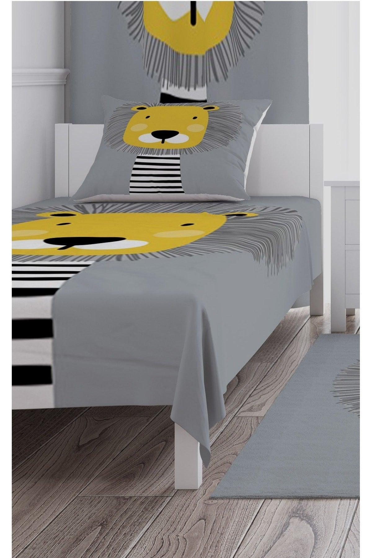 Bedspread Gray Floor Cute Lion 140x220 - - Swordslife