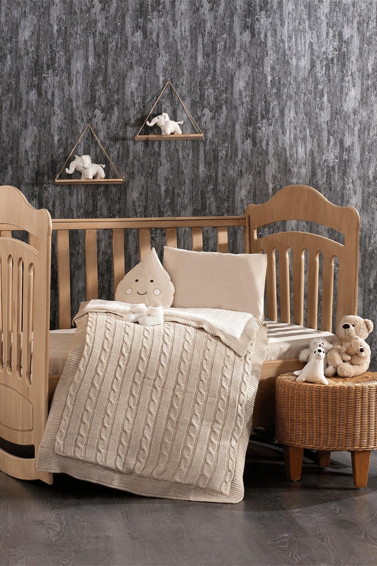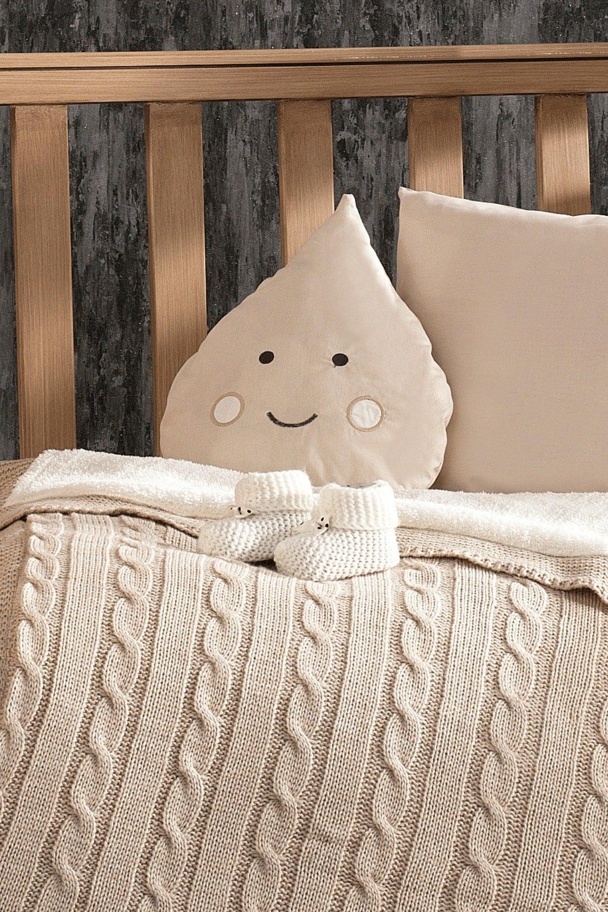 Lily Beige Baby Sleeping Set With 100% Cotton Knitwear Blanket And Pear Padded 4 Piece Booties