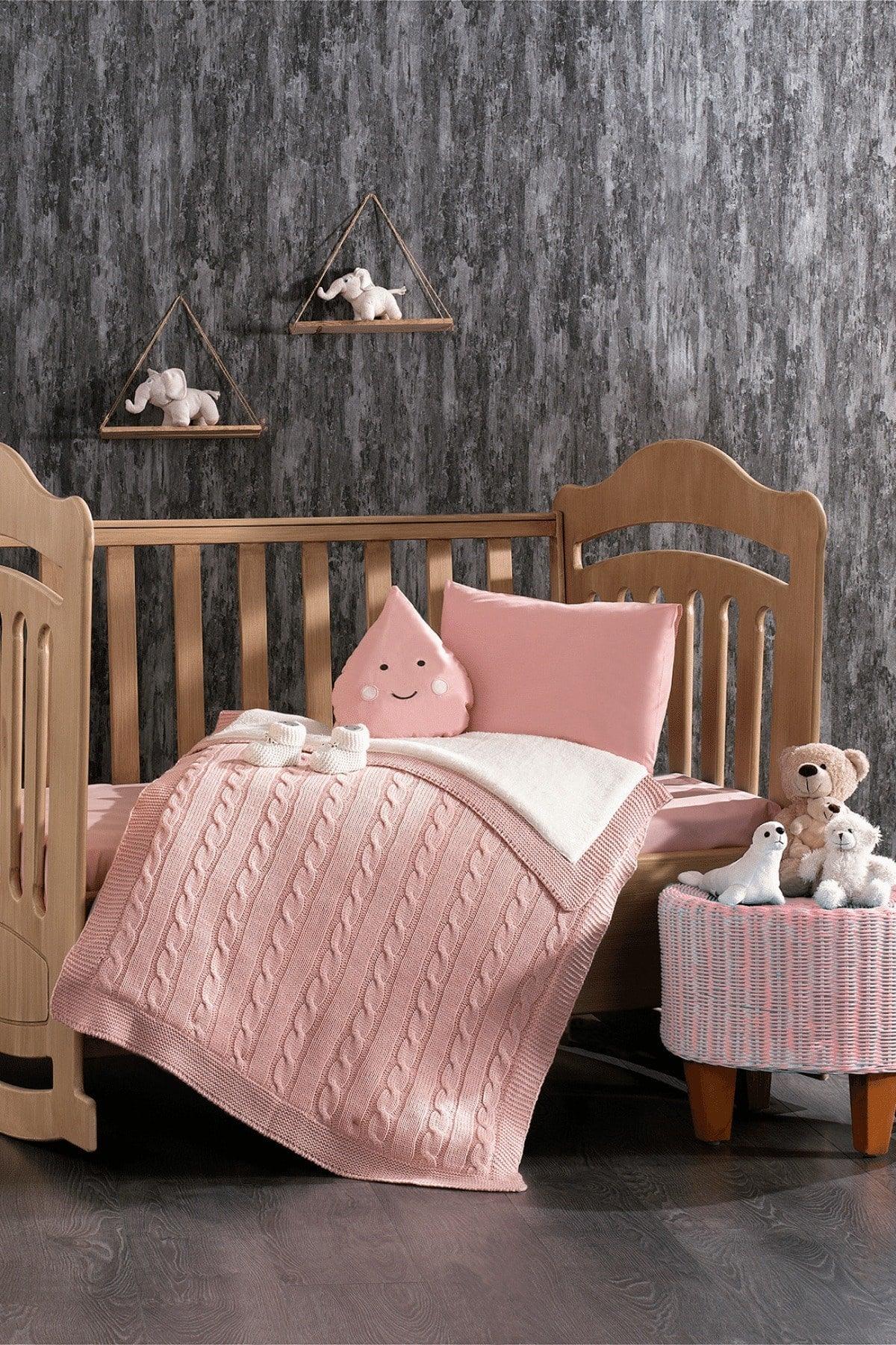 Lily Pink Baby Sleeping Set With 4 Piece Booties And 100% Cotton Knitwear Blanket And Pear Pillow