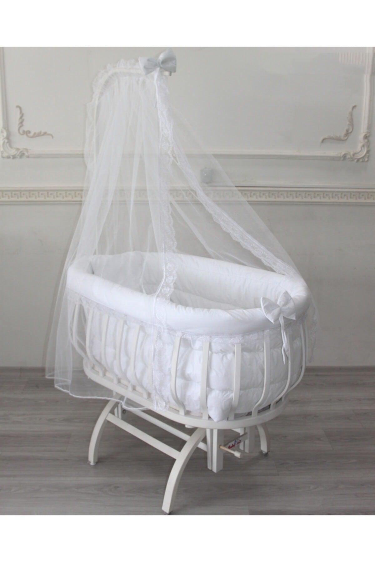 White Basket Cradle Sleep Set ( Not Includes) Granny %100 Bio-Baumwolle