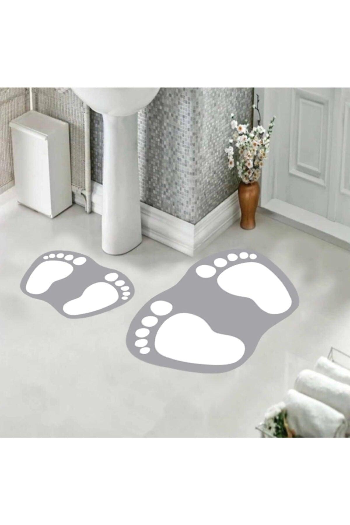 Gray Floor Footprint Patterned Doormat Set Closet Set 80X60 Cm And 40X60 Cm