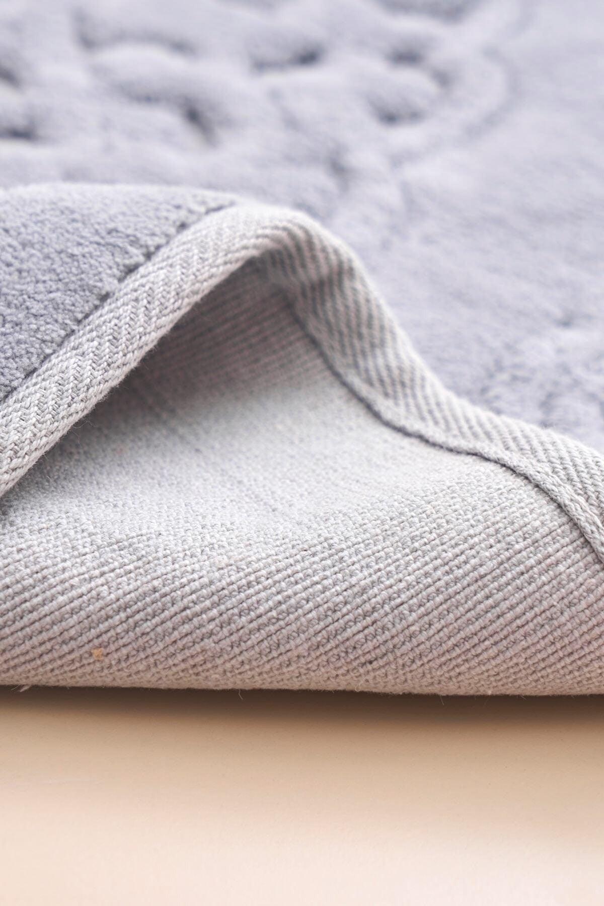 Lotus 2 Piece Cotton Toilet Seat Set, Gray Bath Mat Set