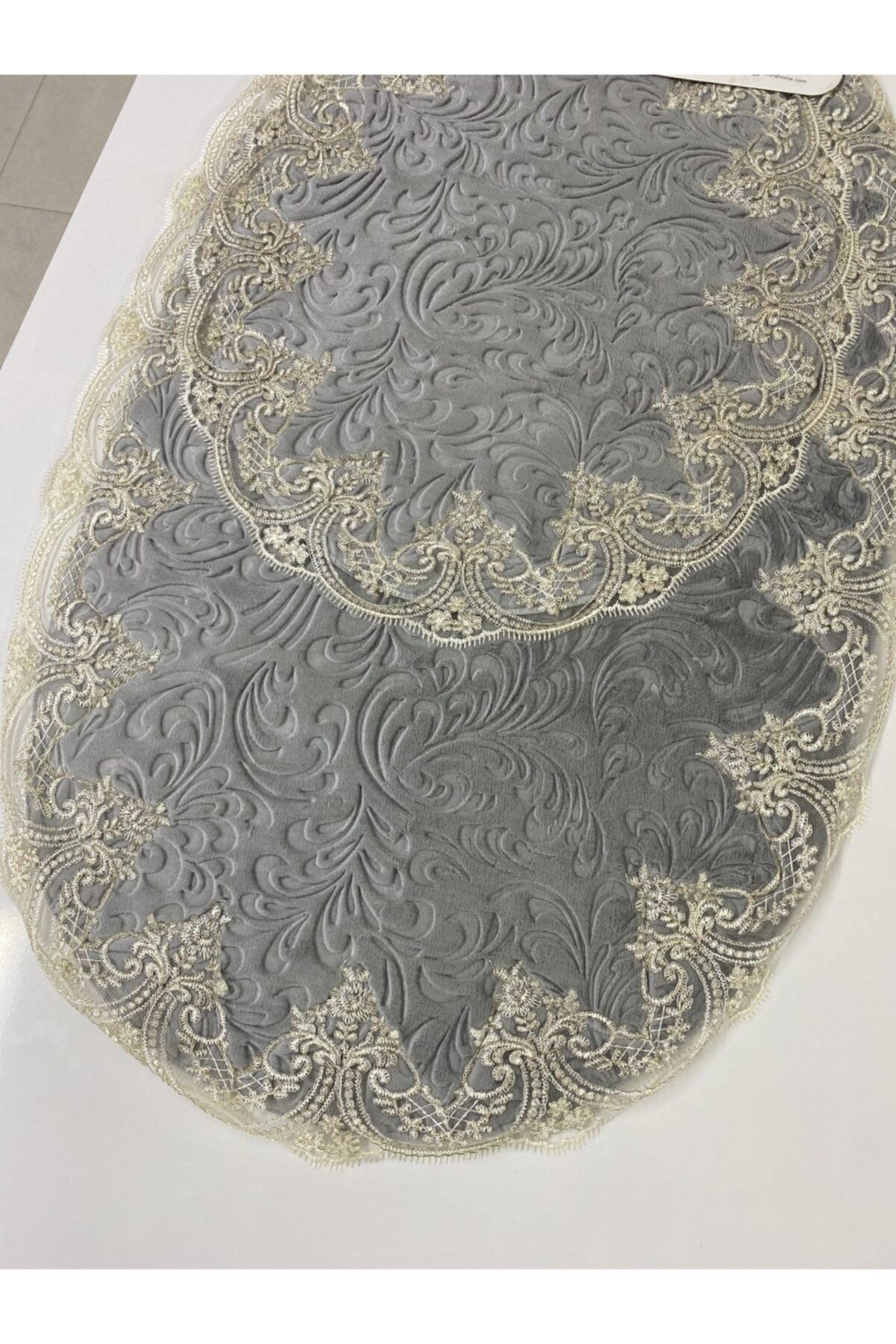 Luxury Oval Gray 2-Piece Dowry French Lace Guipure Closet Set Bath Mat Set