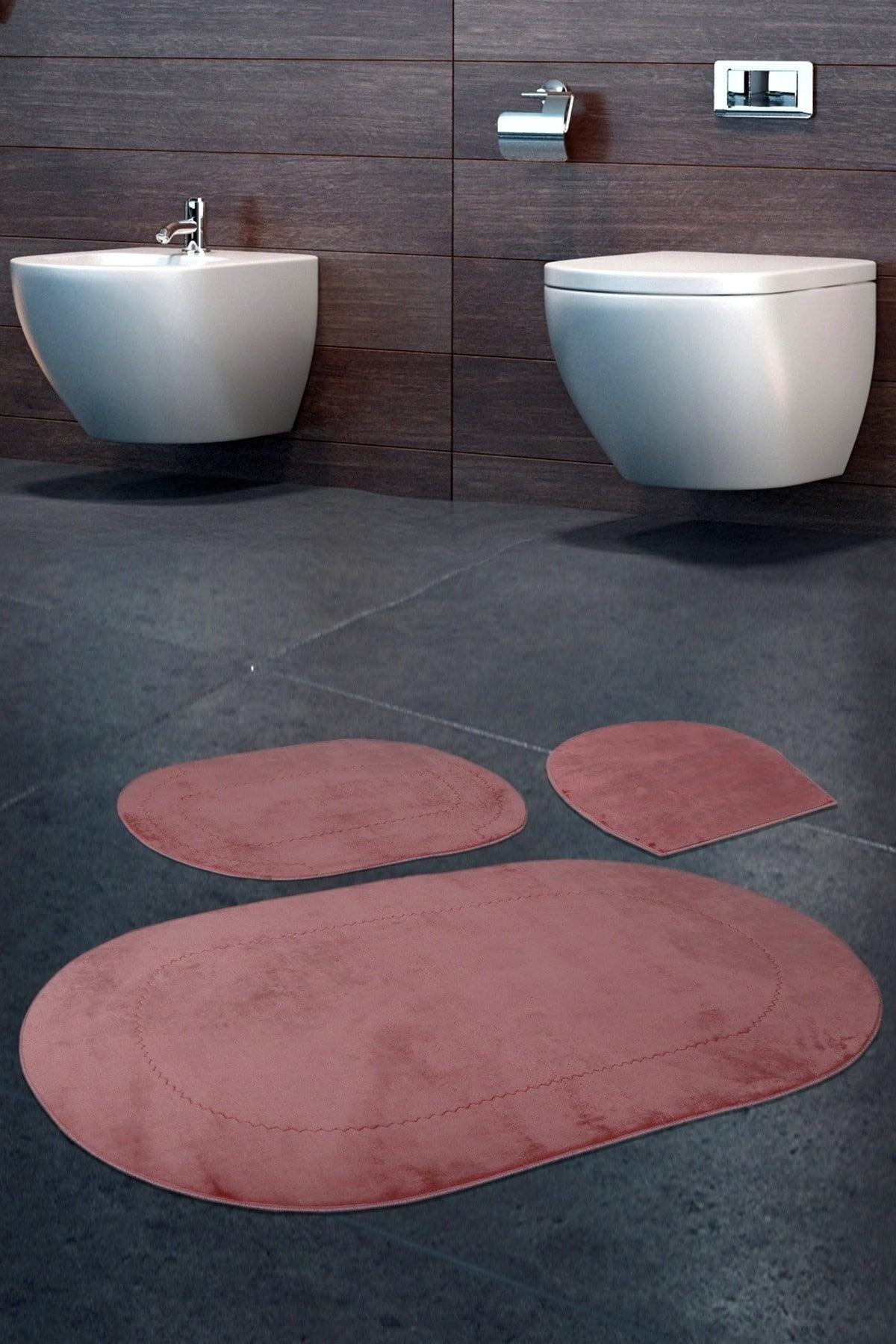 Rixos Powder 3 Pcs Bathroom Carpet Mat Set Non-Slip Toilet Seat Set