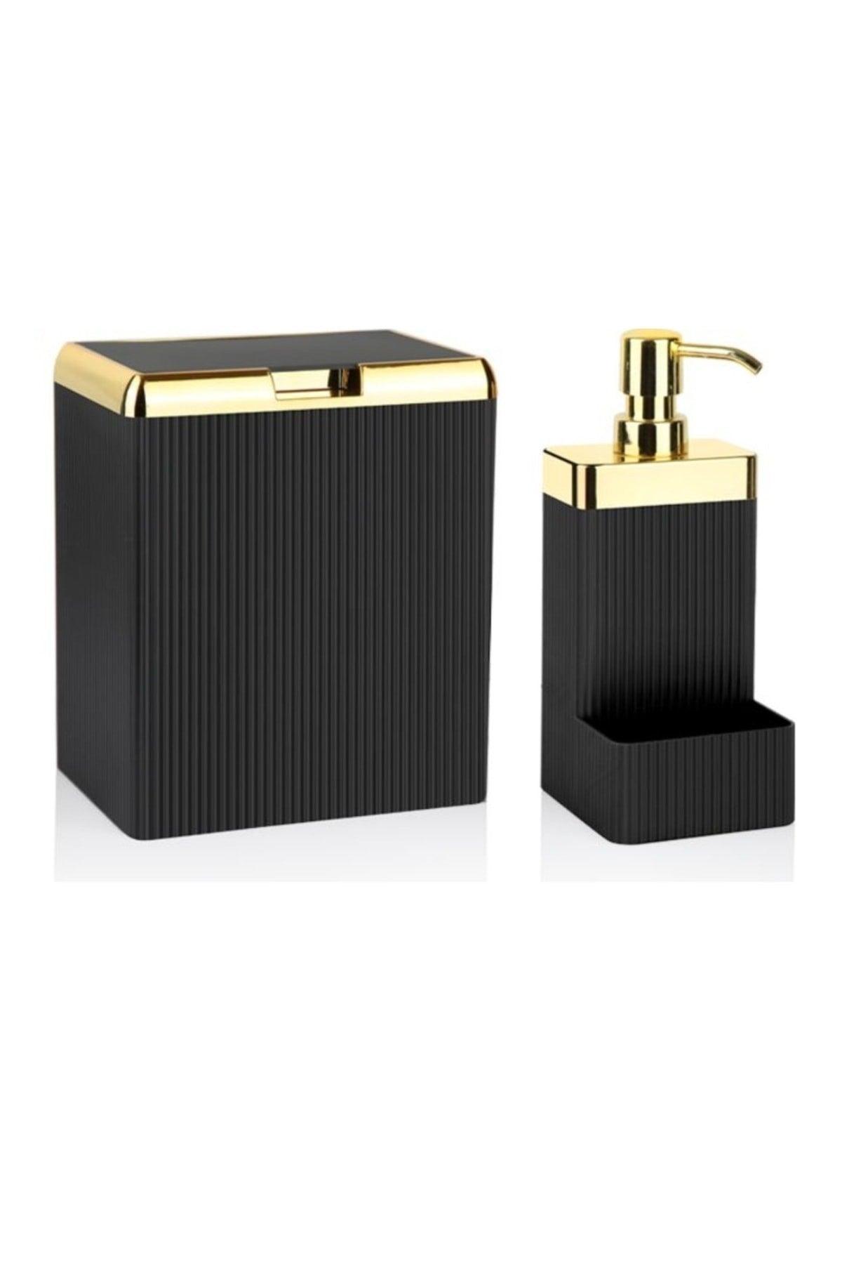 Black Striped Round 2 Pcs Bathroom Set 2 Pcs Bathroom Set Dustbin Wc Brush - Swordslife