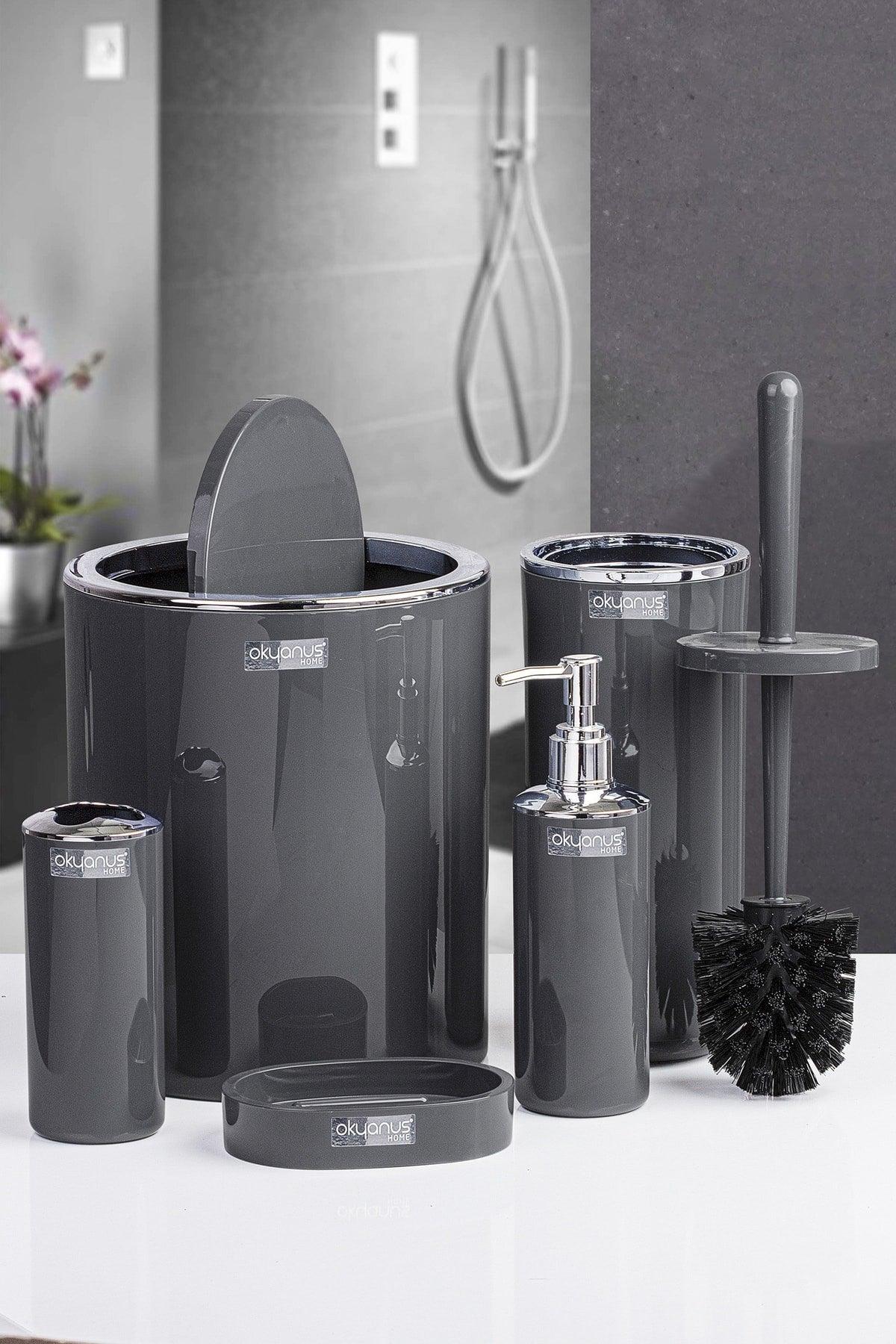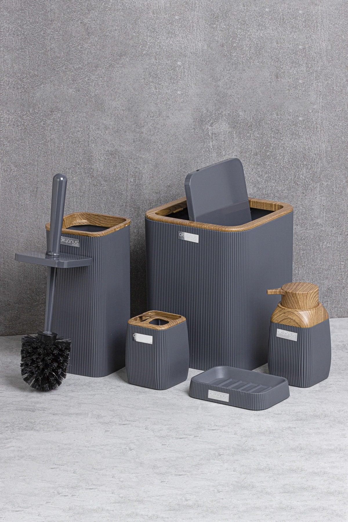 Grauer Streifen Runde 5 Badezimmer Set 5 Stück Müll Eimer Wc Bürste flüssige feste Seifenspender Bürste - Swordslife