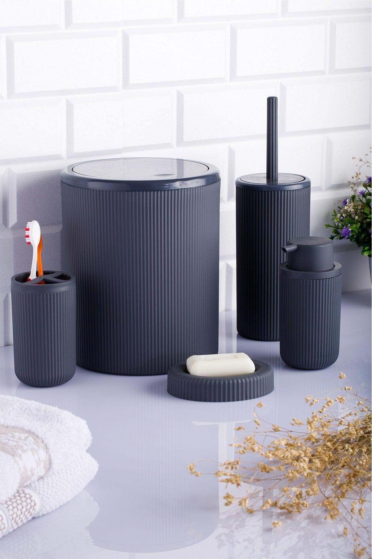 Anthracite Striped Bathroom Set of 5 - Swordslife