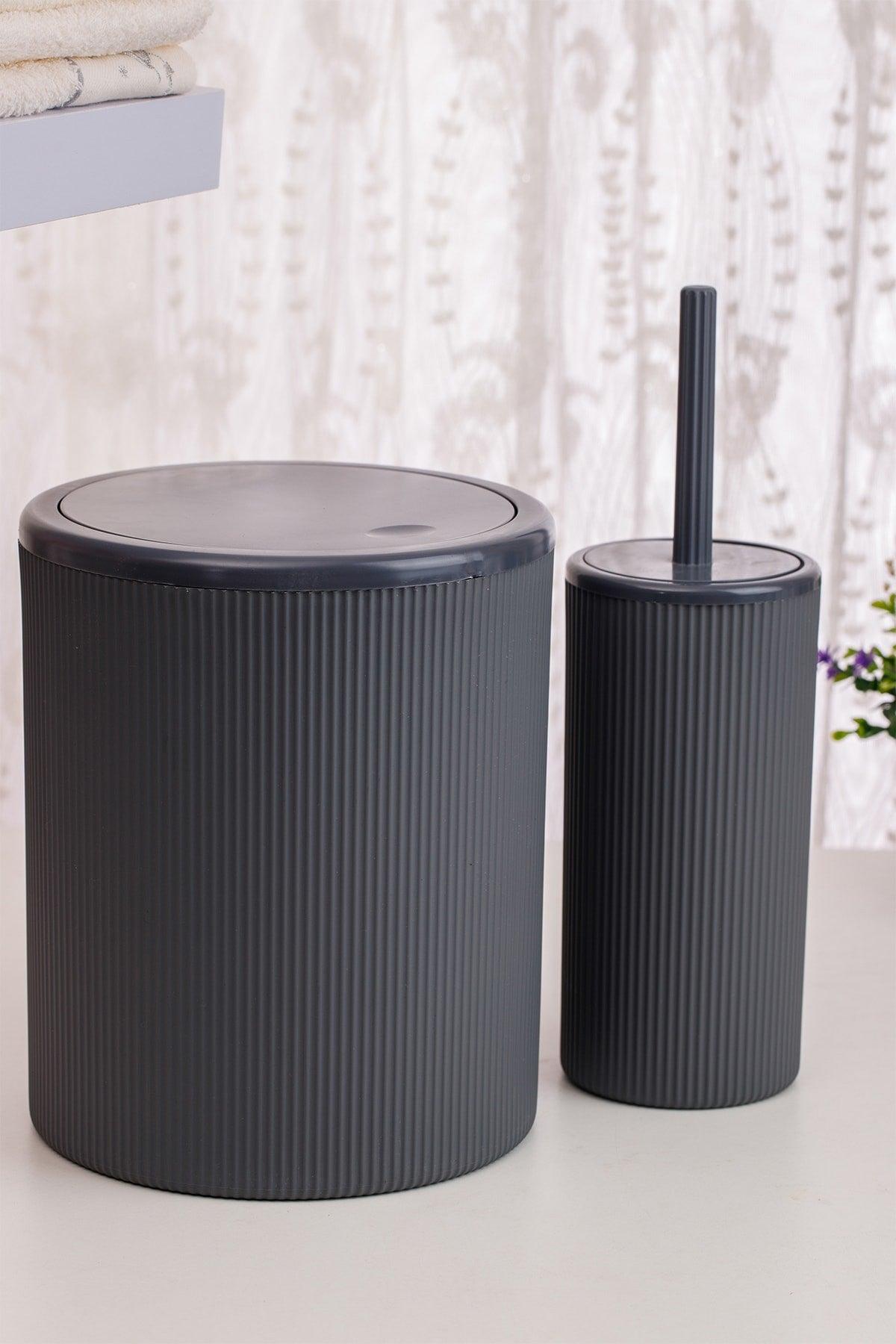 Gray Striped Round 2 Pcs Bathroom Set 2 Pcs Bathroom Set Dustbin Wc Brush