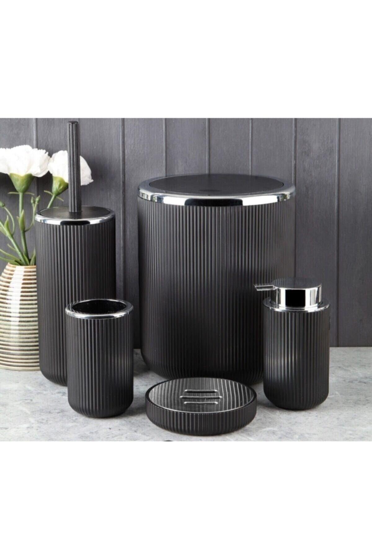 Ayhomee 5 Piece Black Acrylic Bathroom Set Liquid Soap Dispenser Set