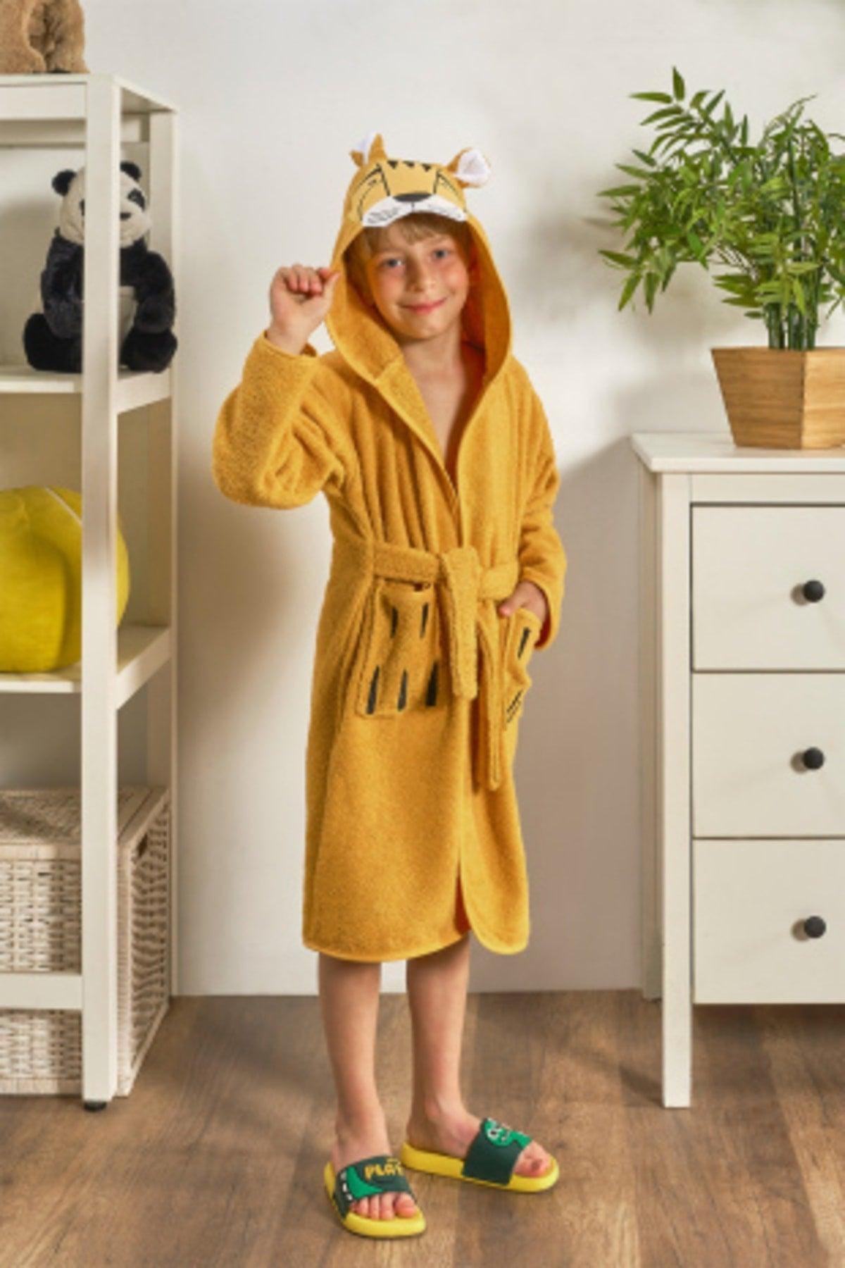 Hooded Girls-Boys Bathrobe Cotton-Tiger