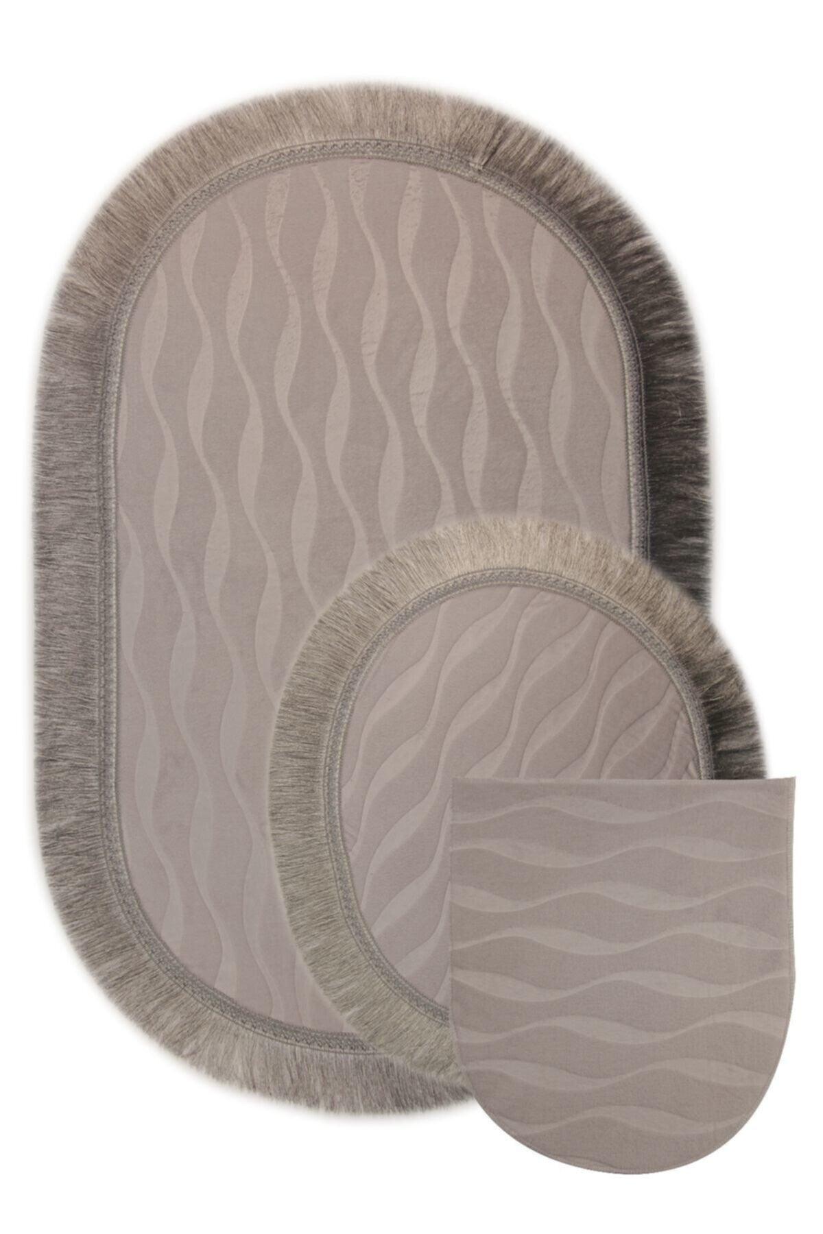 Eco Fringed Gray 3 Piece Bathroom Carpet Mat Set Closet Set