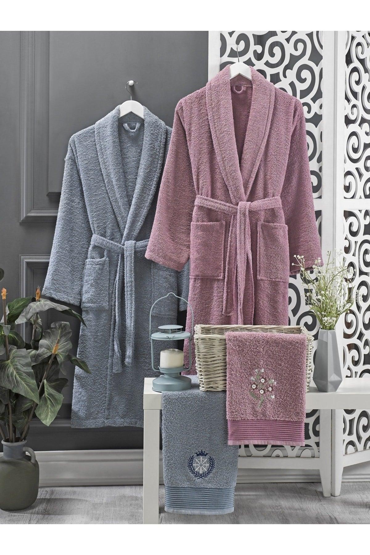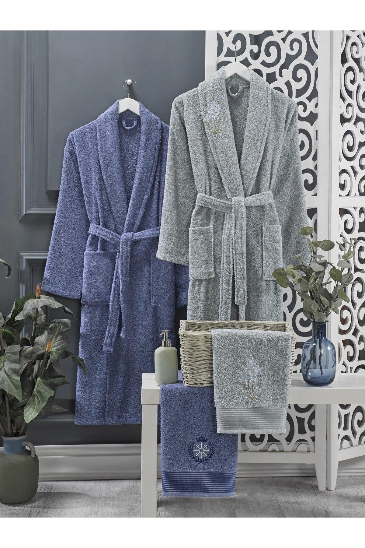 Muthum Navy Blue Bath Towels Bathrobe Set of 4