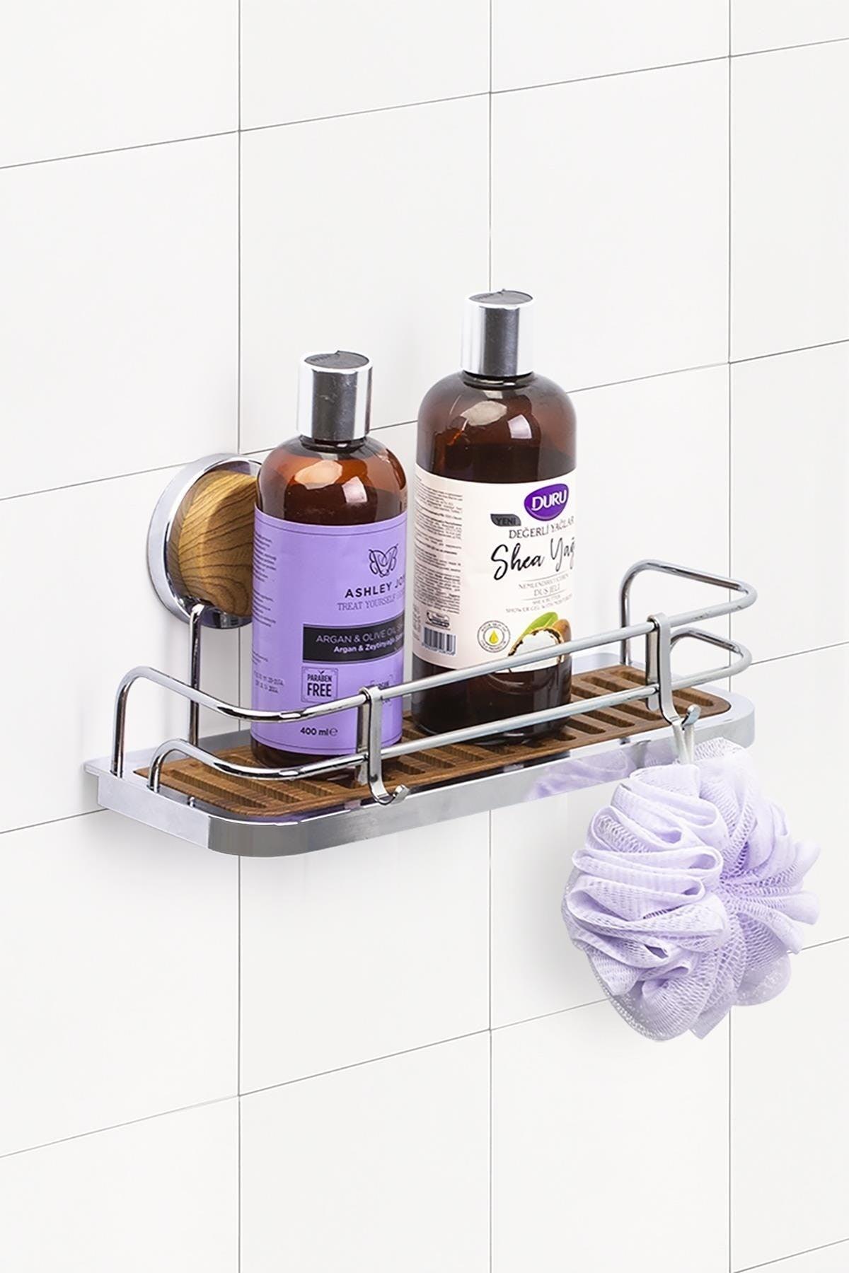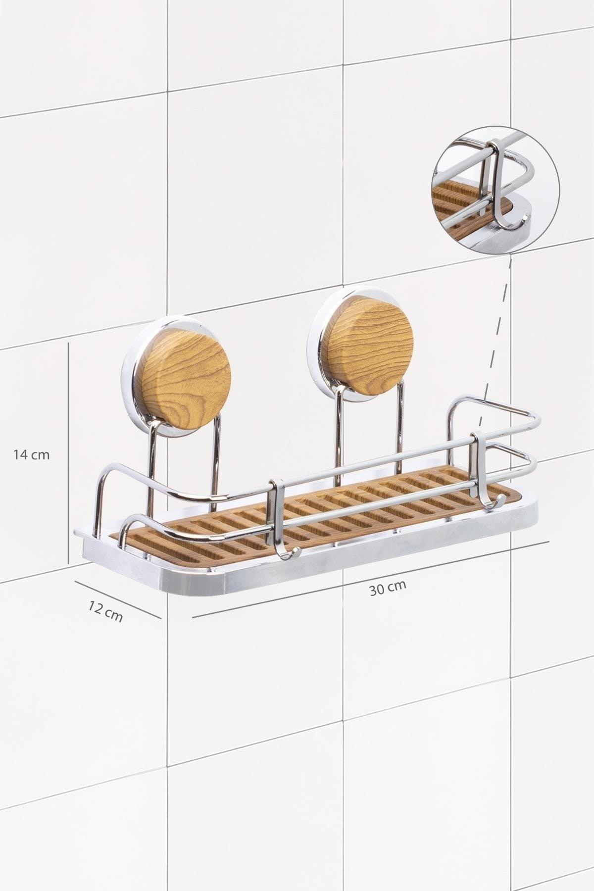 Premium Chrome Magic Fix Wooden Rectangle Bathroom Shelf