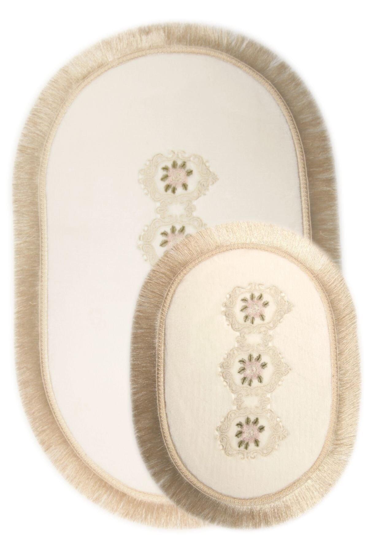 Shems Cream 2 Piece Lacy And Tassel Closet Set Bathroom Carpet Mat Set
