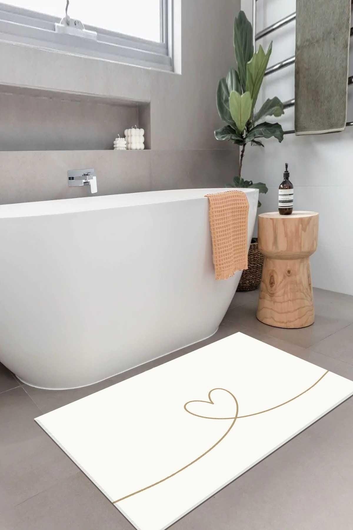 Washable Heart Bath Rug Mat One Piece White (60X100) Dc-8047 Dc-8047