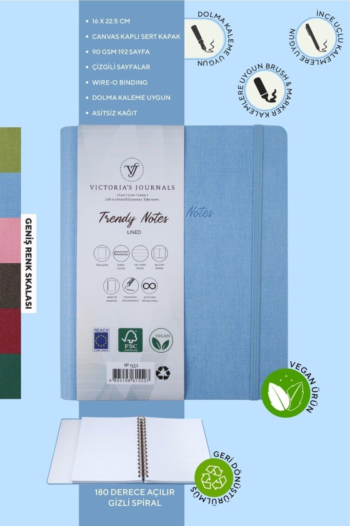 Canvas Undated Lined Notebook, Notepad, Concealed Spiral 17X24 Cm, 90 Gr, 96 Yp. A.Blue