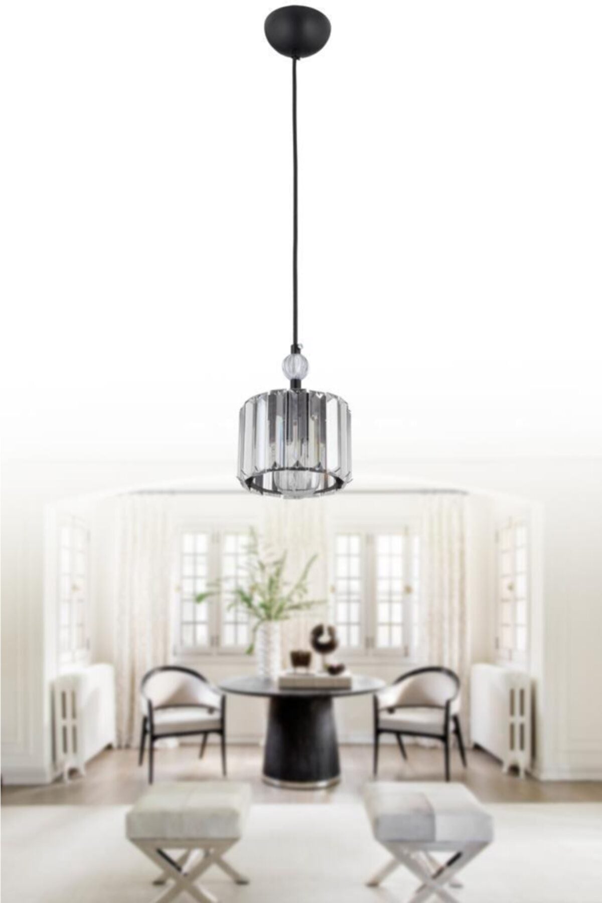 Dolunay Single Black Y-10 Crystal Stone Plumbing Chandelier