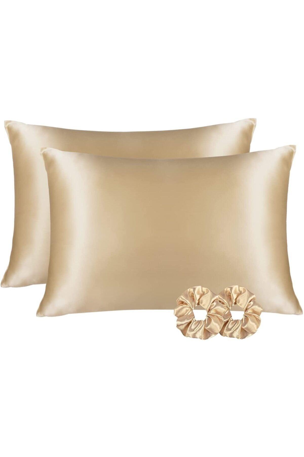 Silk Satin 50X70 Cm Pillow Cover 2 Pieces Buckle Curly Hair Beige 2 Pieces