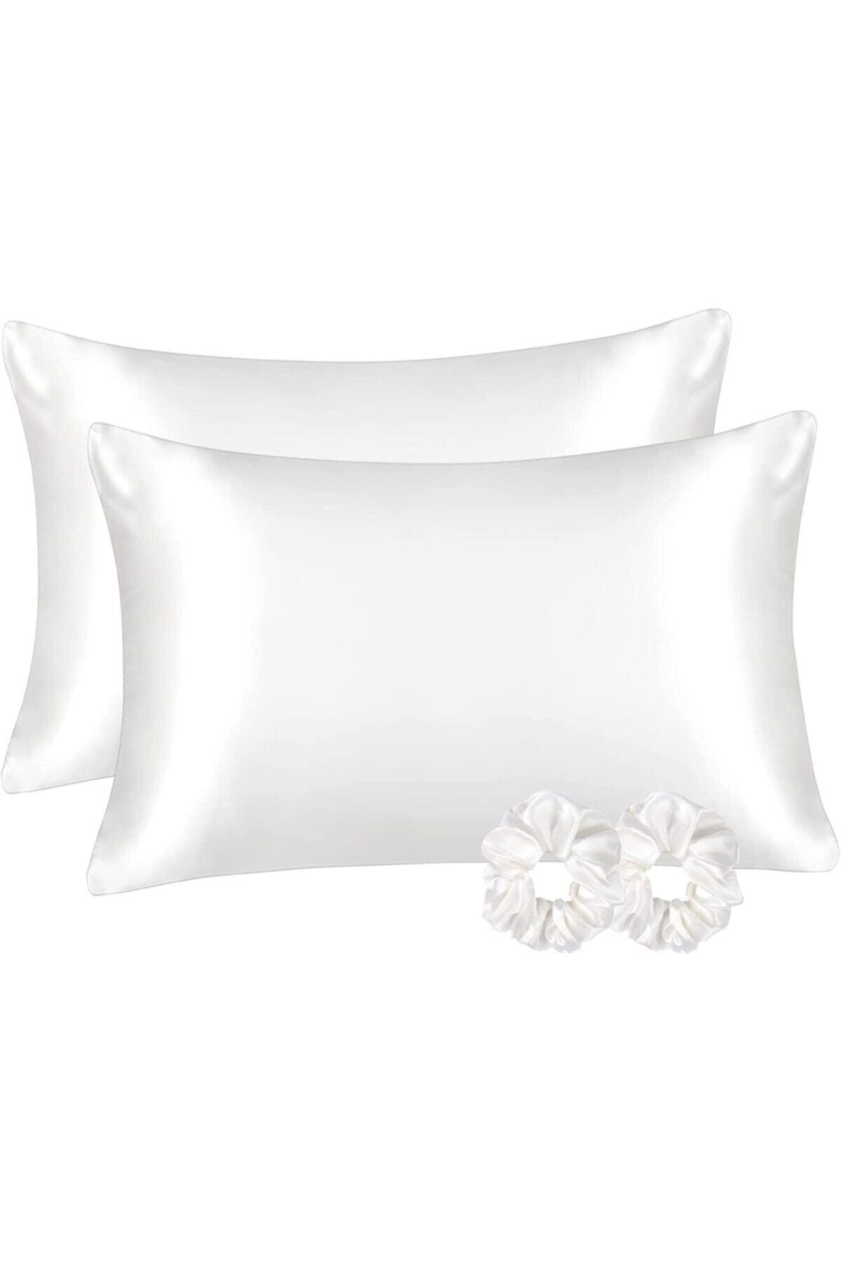 Silk Satin 50X70 Cm Pillow Cover 2 Pieces Buckle Curly Hair White 2 Pieces